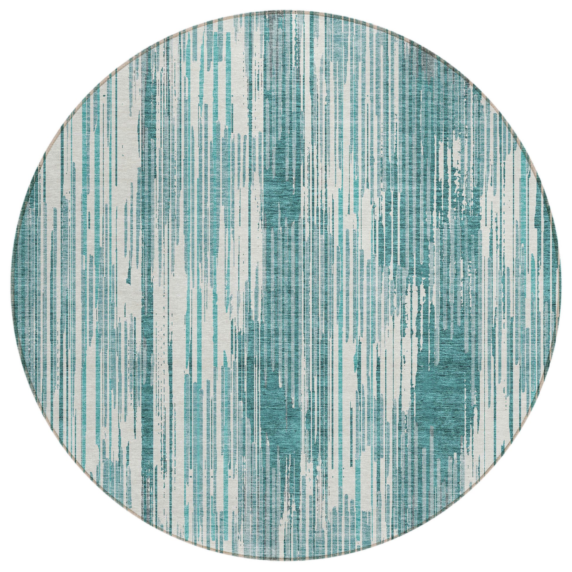 Tabselect Home Line 8' Teal Blue And Ivory Round Striped Washable Indoor Outdoor Area Rug