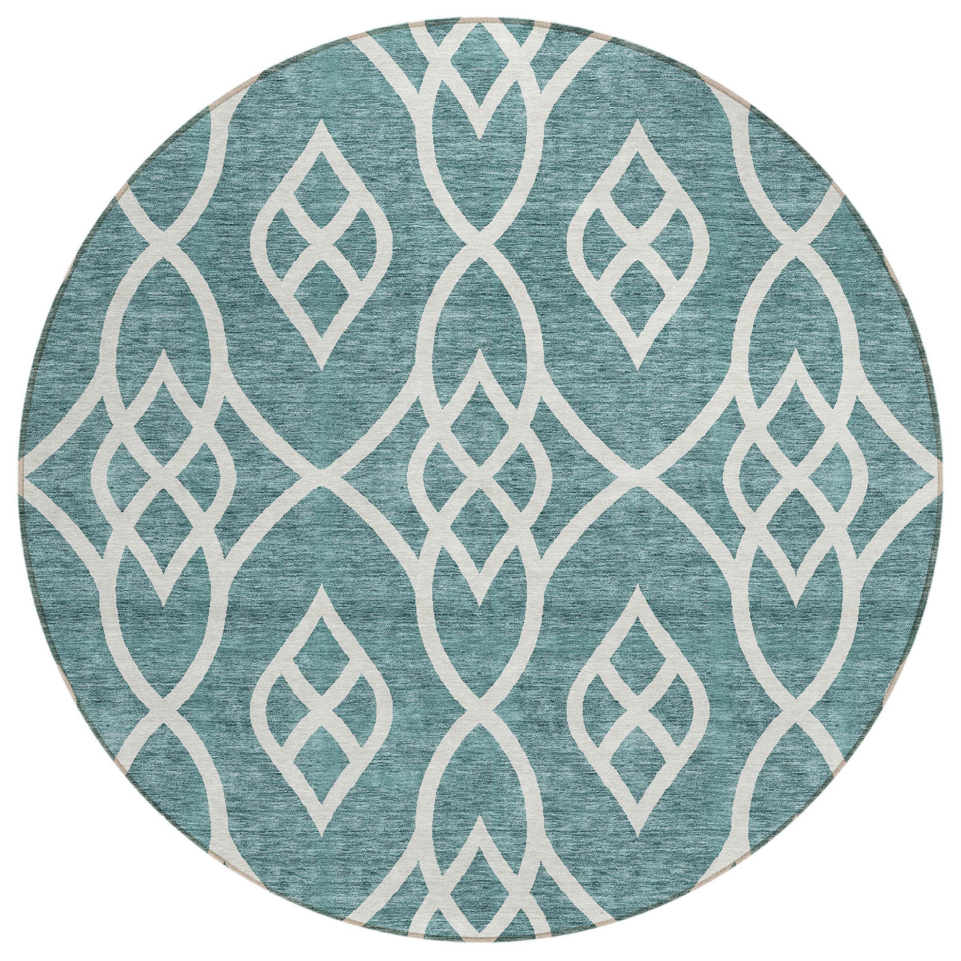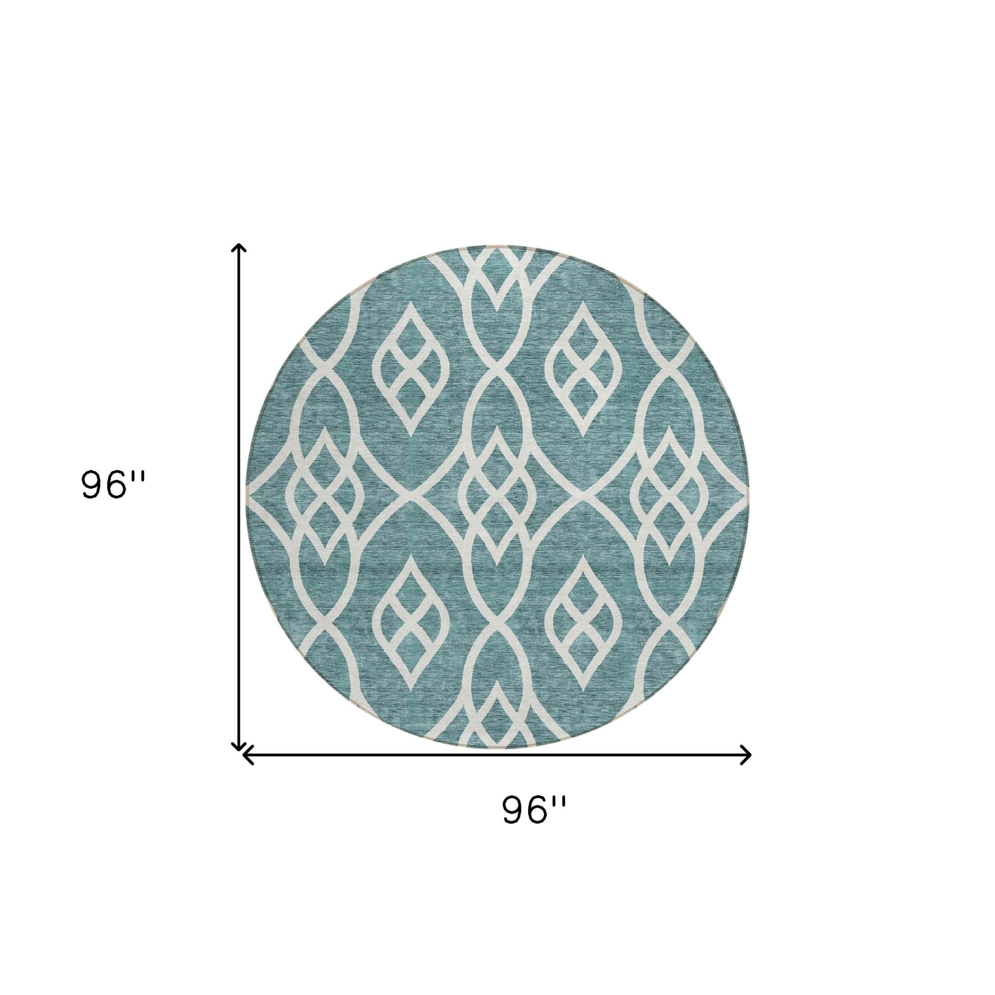 Tabselect Home Line 8' Teal Blue And Ivory Round Trellis Washable Indoor Outdoor Area Rug