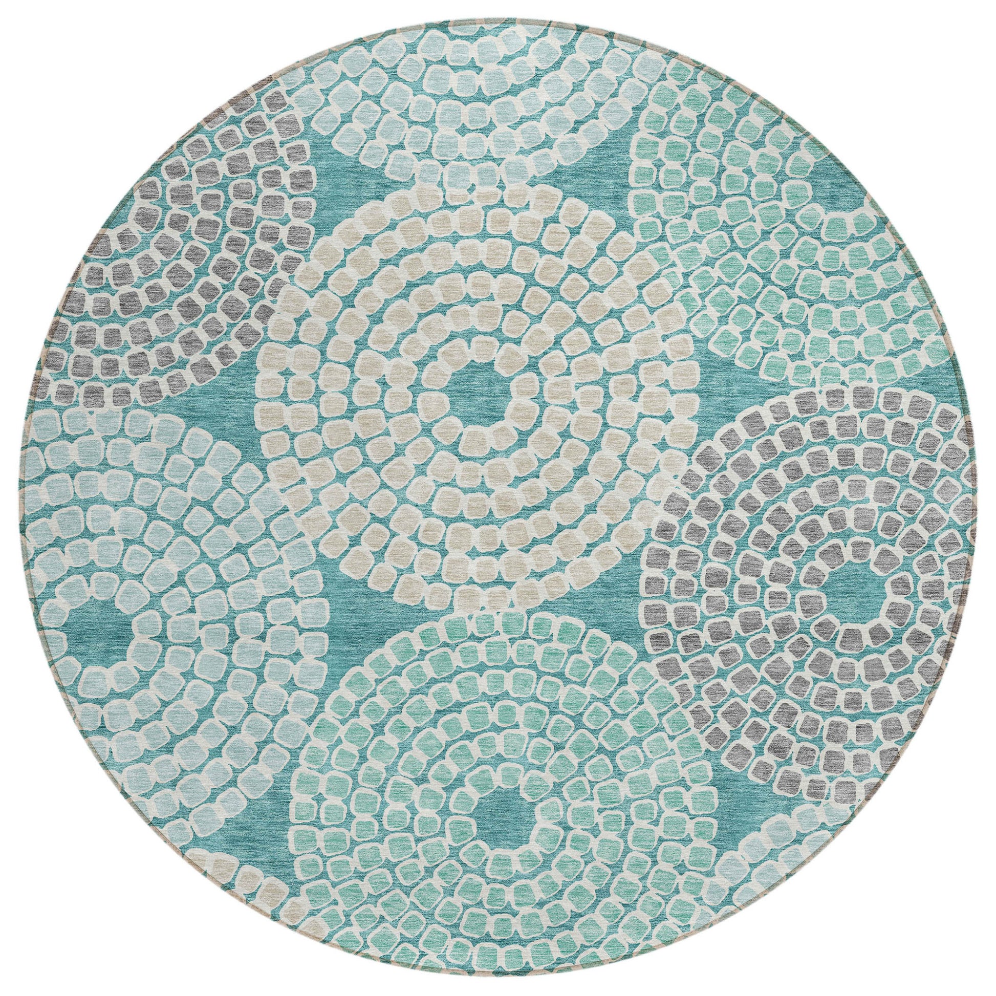 Tabselect Home Line 8' Teal Blue Beige And Gray Round Geometric Washable Indoor Outdoor Area Rug
