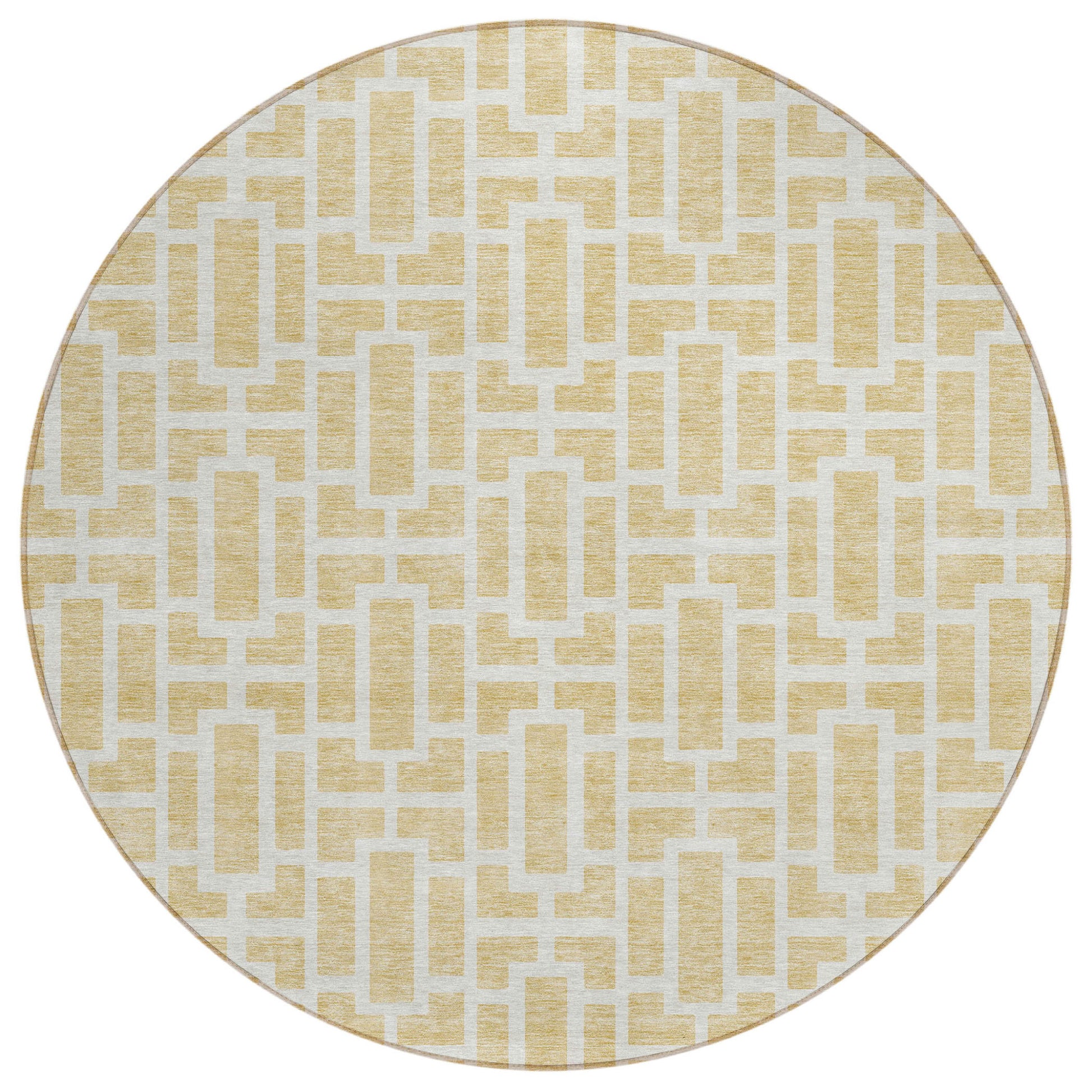 Tabselect Home Line 8' Wheat And Ivory Round Geometric Washable Indoor Outdoor Area Rug