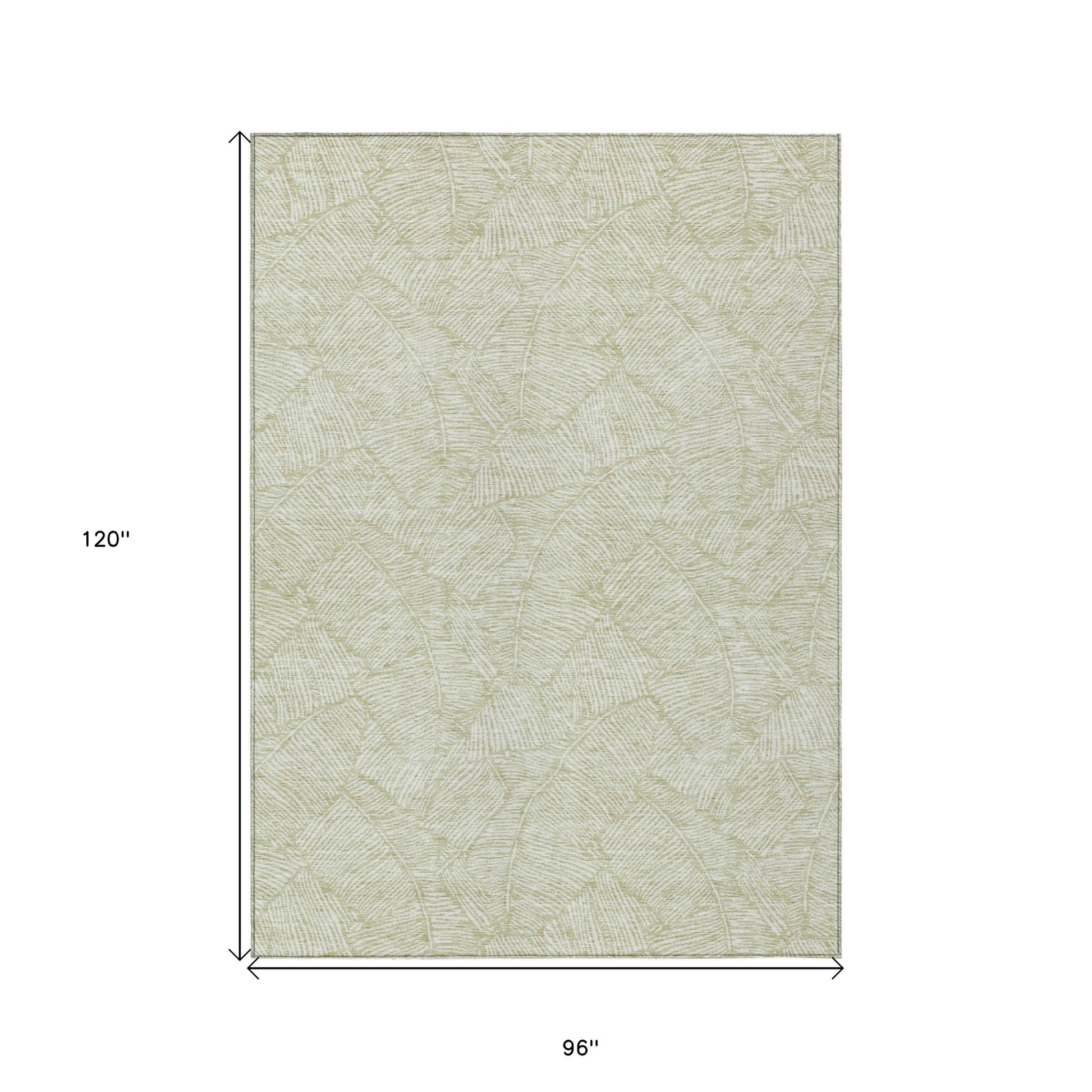Tabselect Home Line 8' X 10' Artichoke Green And Ivory Floral Washable Indoor Outdoor Area Rug
