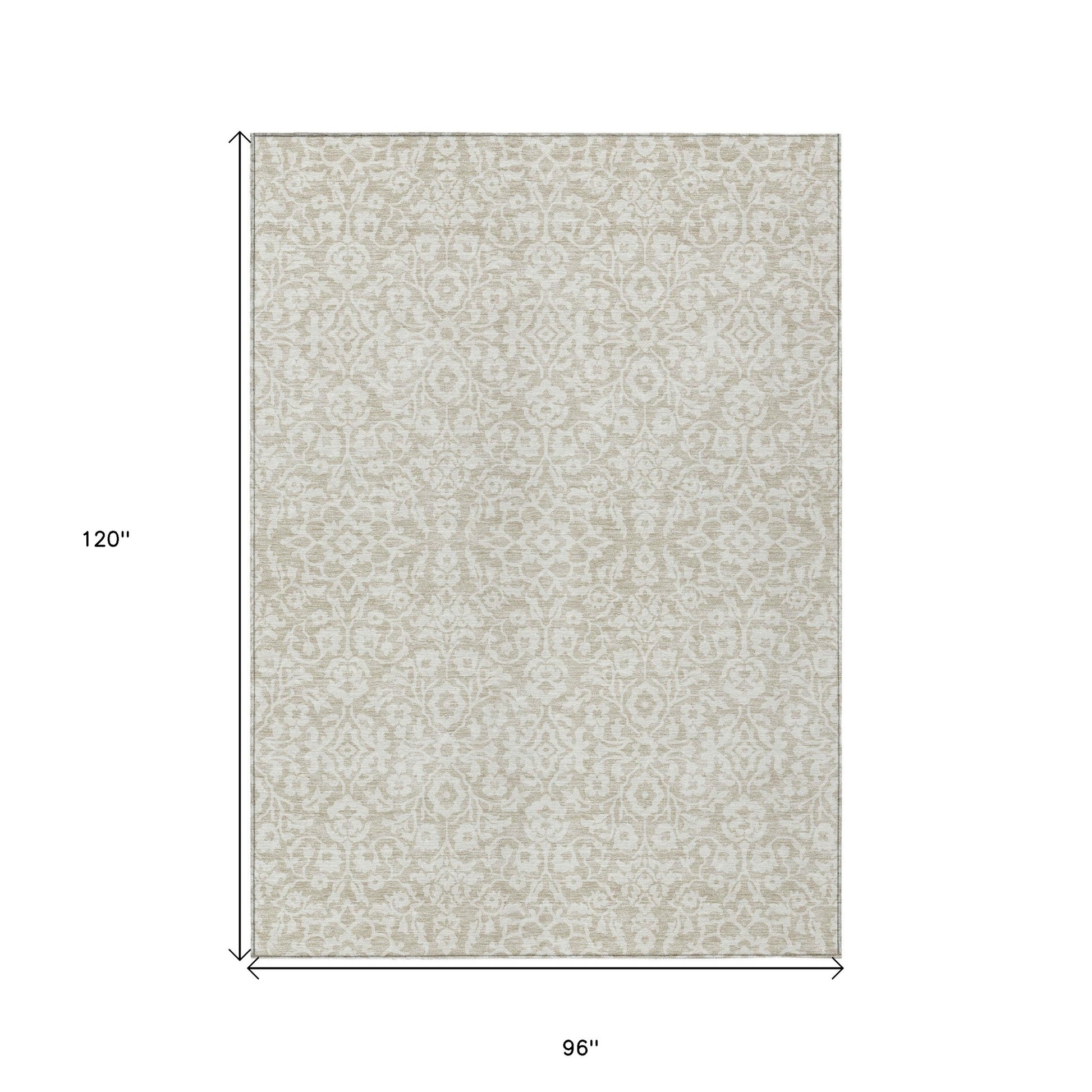 Tabselect Home Line 8' X 10' Beige And Ivory Damask Washable Indoor Outdoor Area Rug