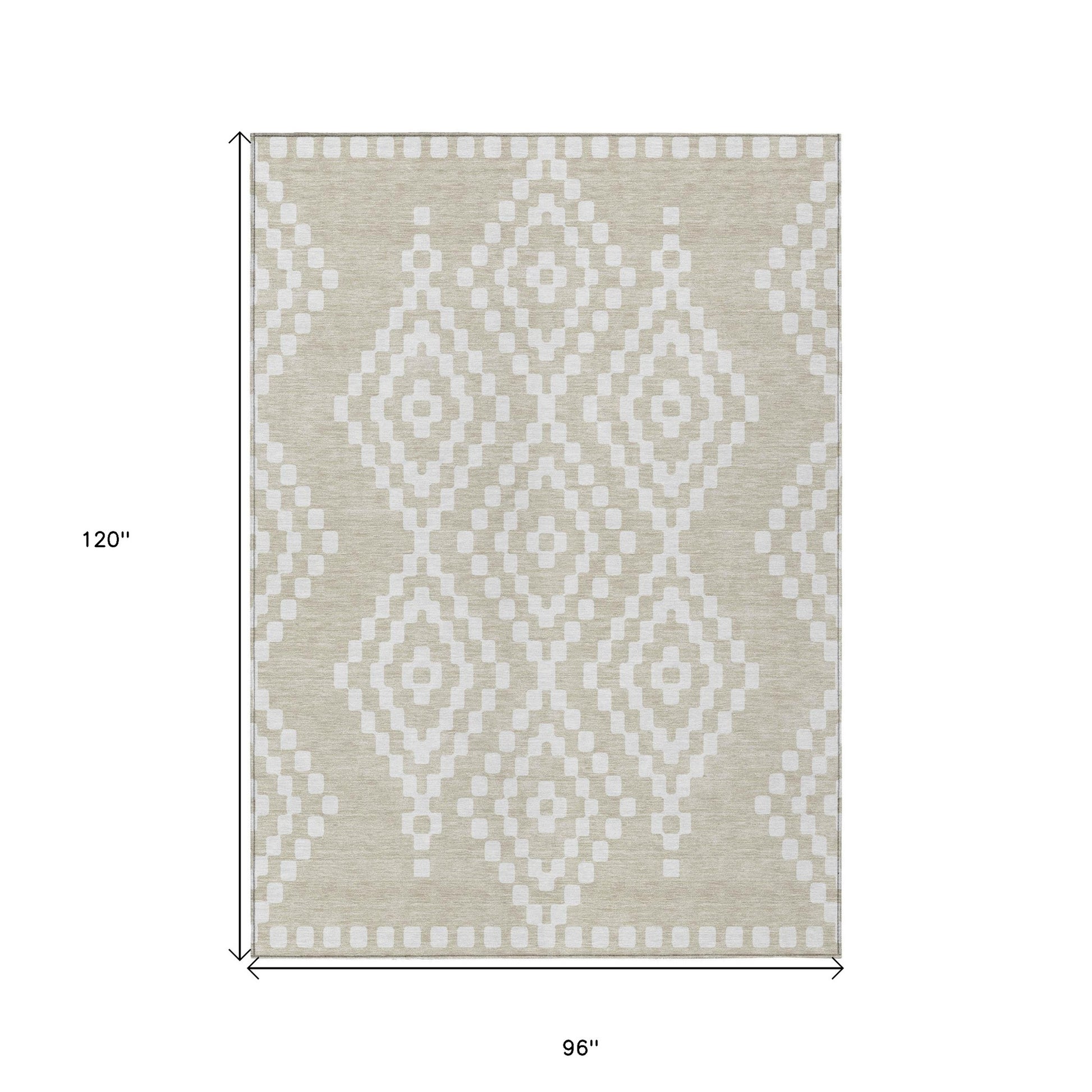 Tabselect Home Line 8' X 10' Beige And Ivory Geometric Washable Indoor Outdoor Area Rug