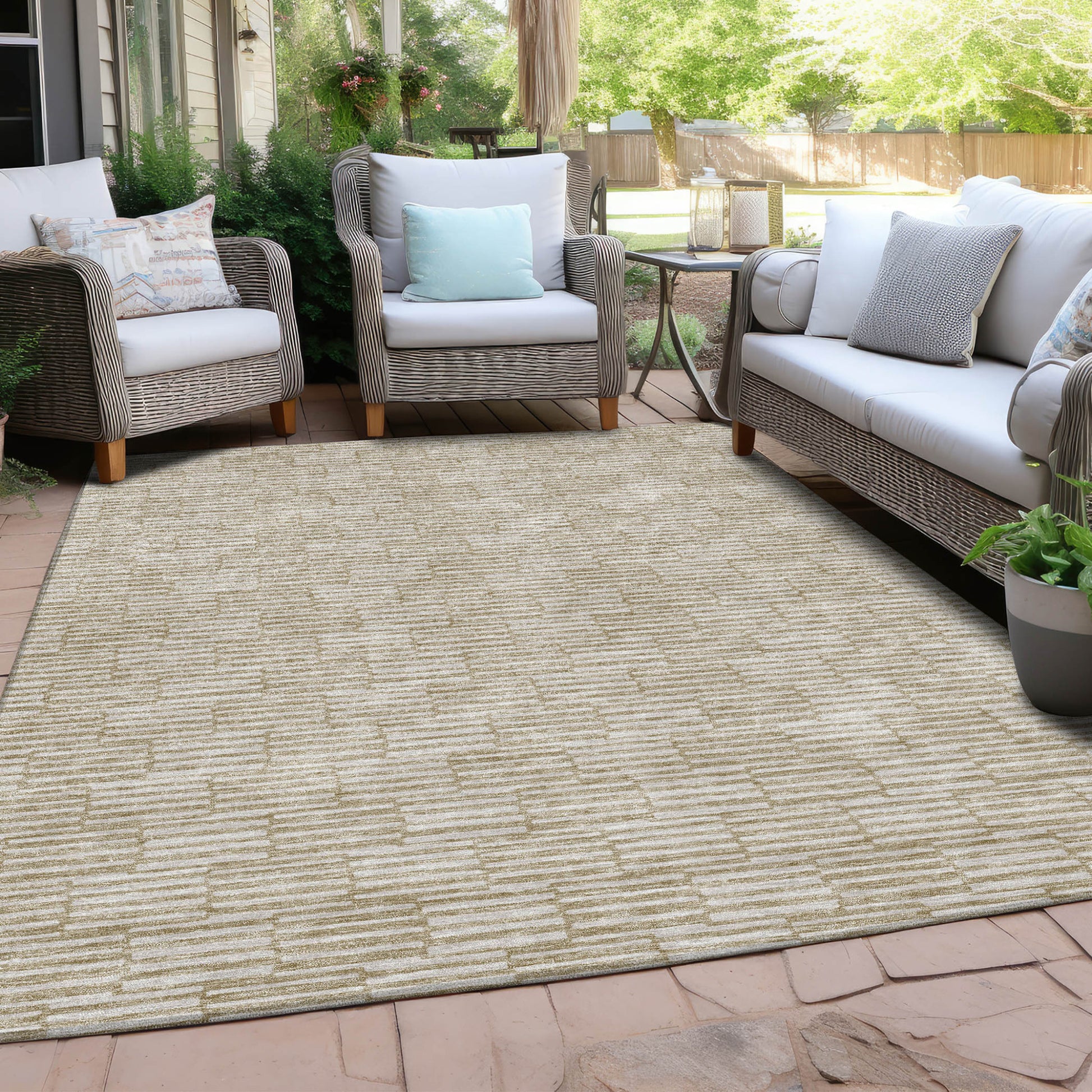 Tabselect Home Line 8' X 10' Beige And Ivory Geometric Washable Indoor Outdoor Area Rug