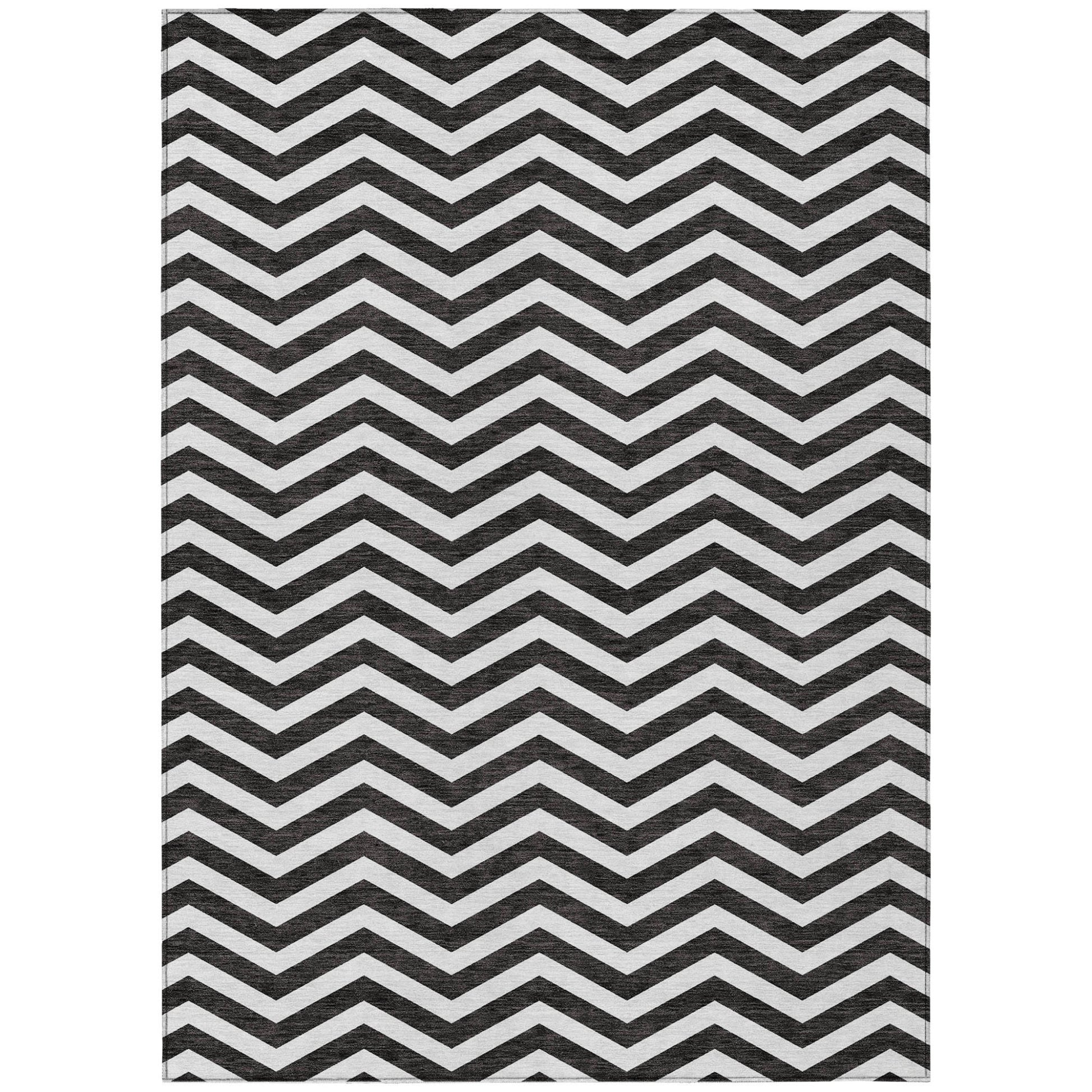 Tabselect Home Line 8' X 10' Black And Ivory Chevron Washable Indoor Outdoor Area Rug