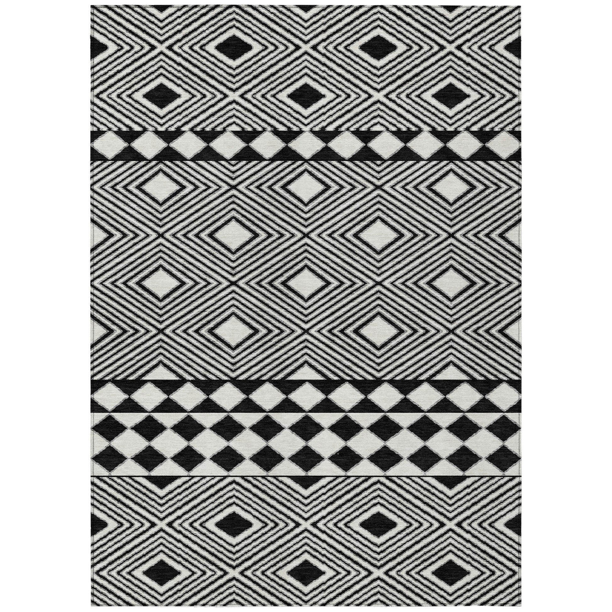 Tabselect Home Line 8' X 10' Black And Ivory Geometric Washable Indoor Outdoor Area Rug