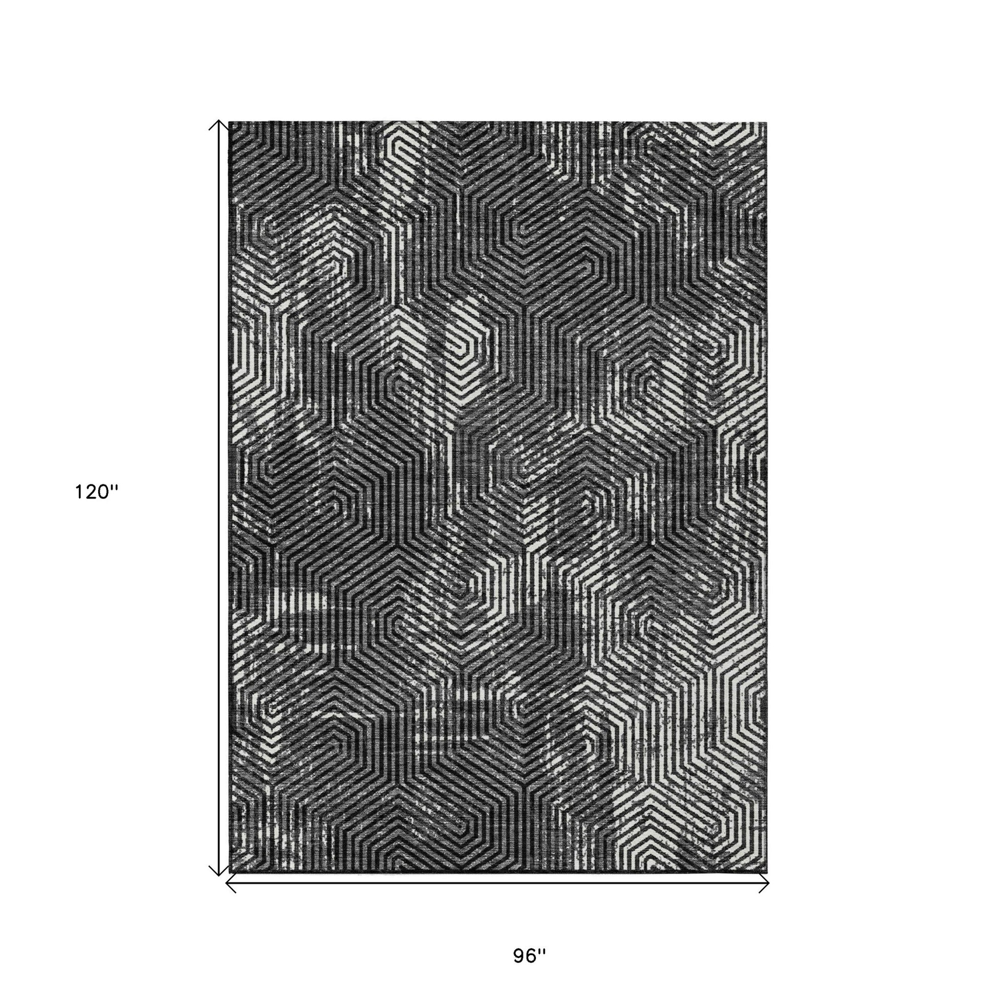 Tabselect Home Line 8' X 10' Black And Ivory Geometric Washable Indoor Outdoor Area Rug