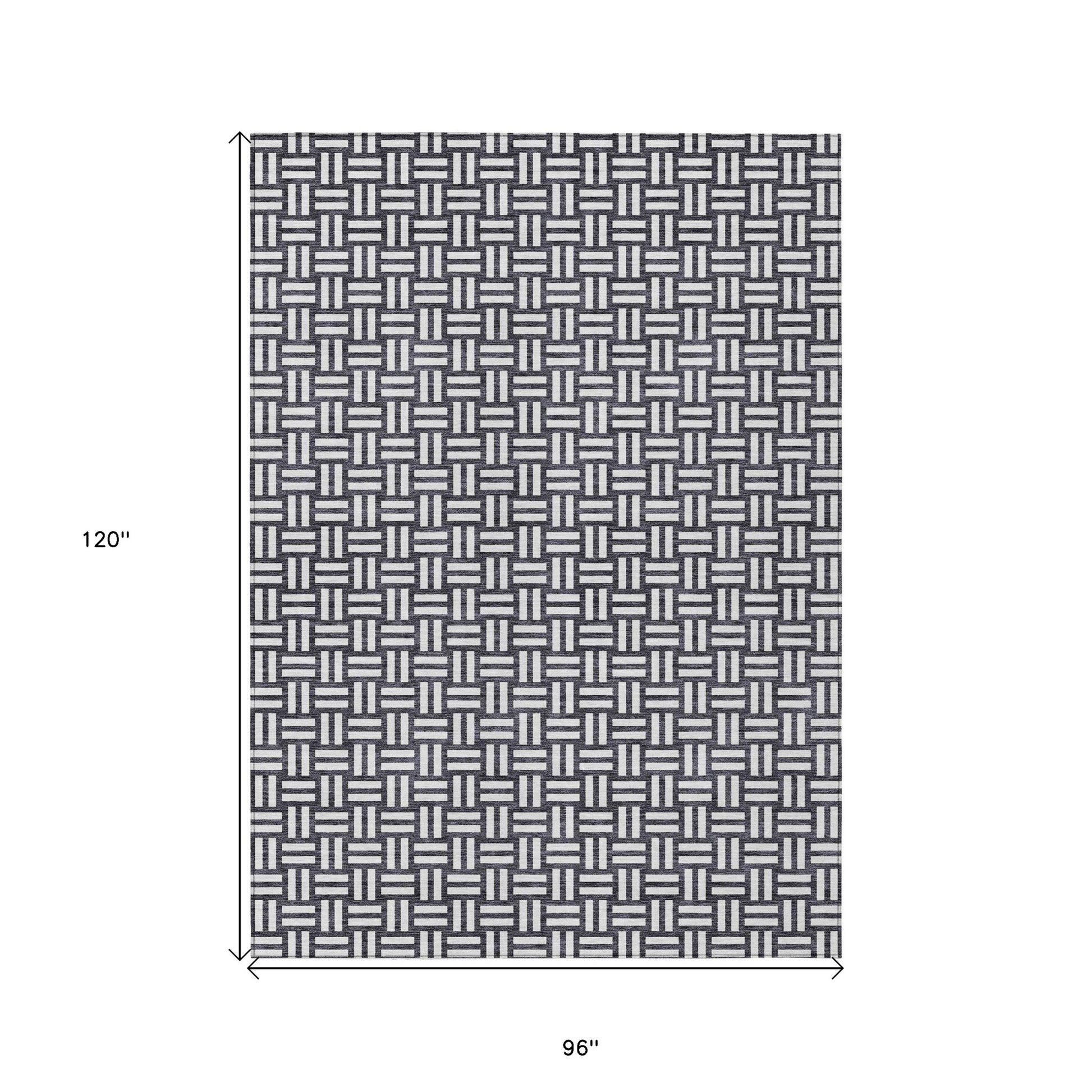 Tabselect Home Line 8' X 10' Black And Ivory Geometric Washable Indoor Outdoor Area Rug