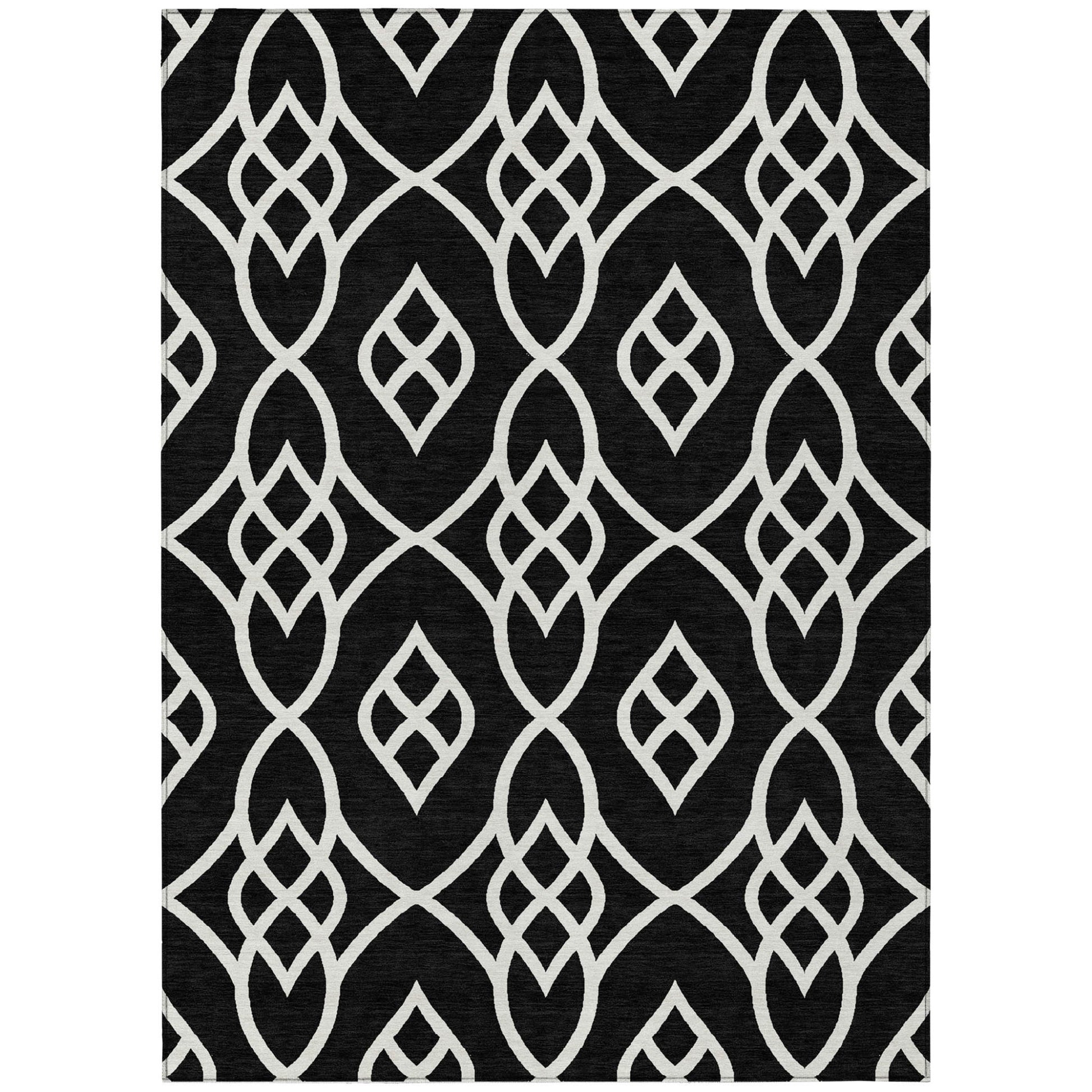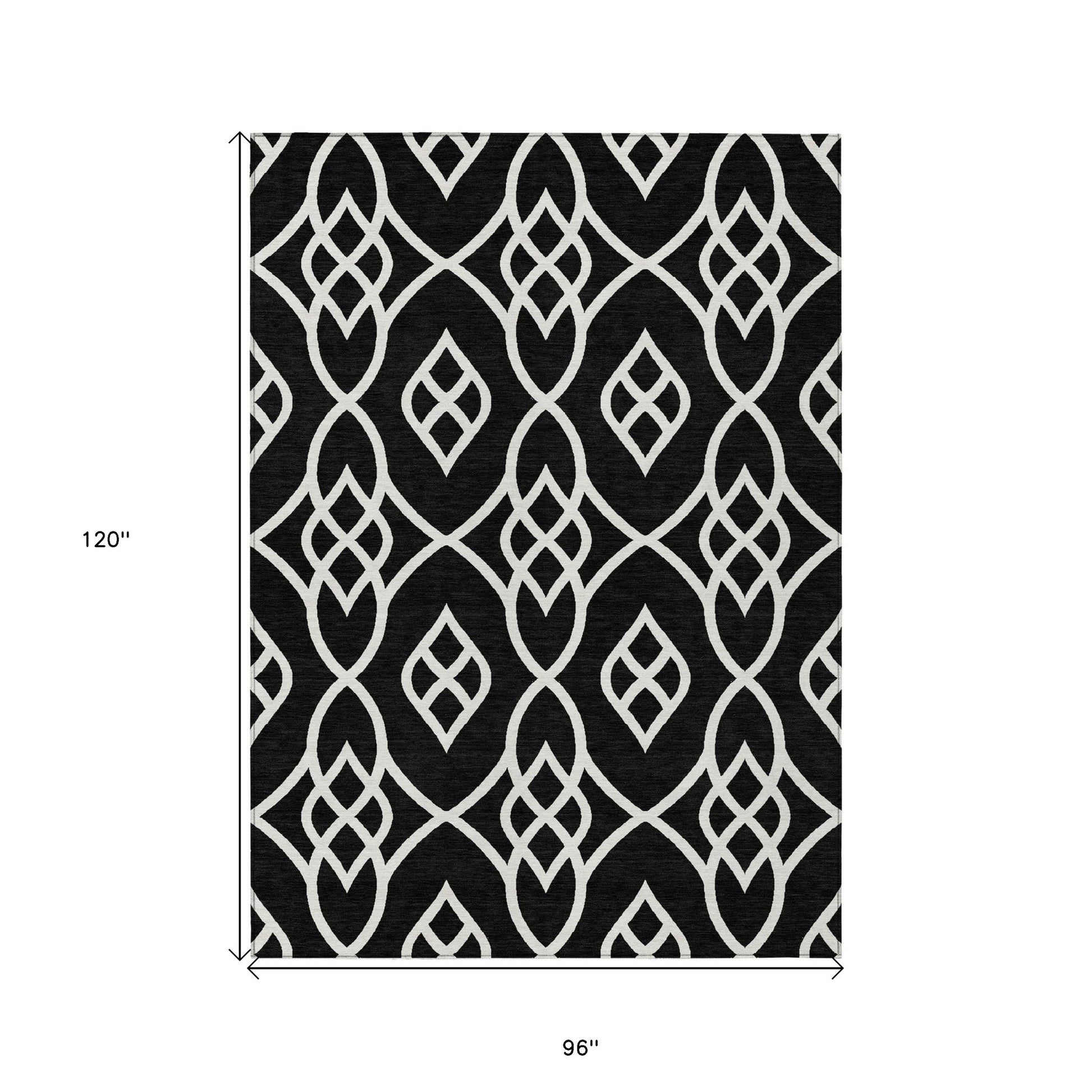 Tabselect Home Line 8' X 10' Black And Ivory Trellis Washable Indoor Outdoor Area Rug