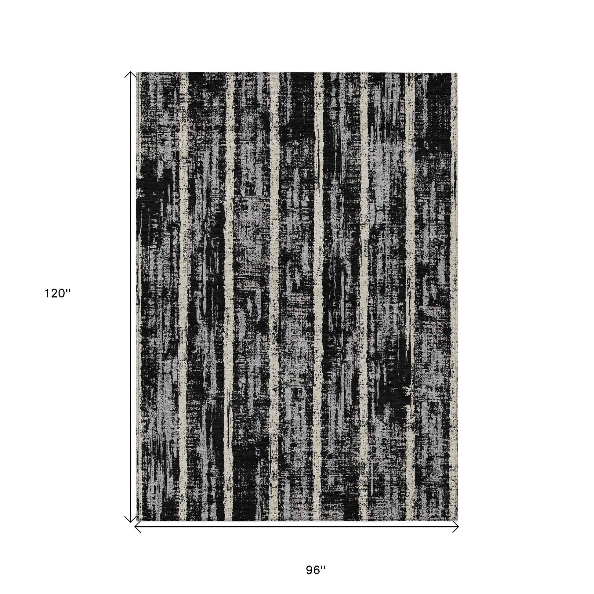 Tabselect Home Line 8' X 10' Black Gray And Ivory Striped Washable Indoor Outdoor Area Rug