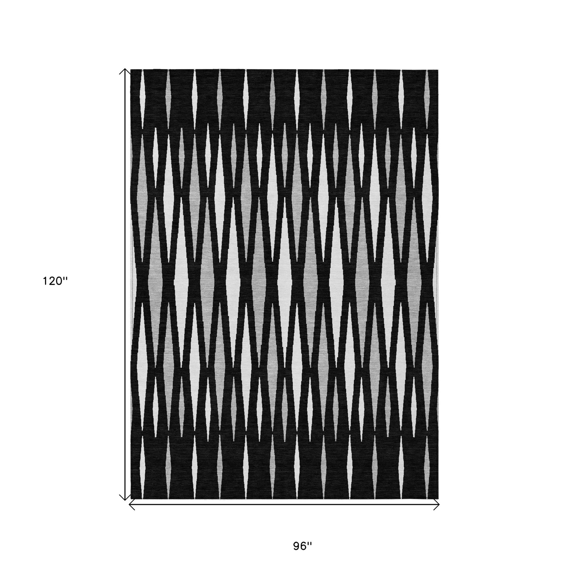 Tabselect Home Line 8' X 10' Black Ivory And Gray Geometric Washable Indoor Outdoor Area Rug