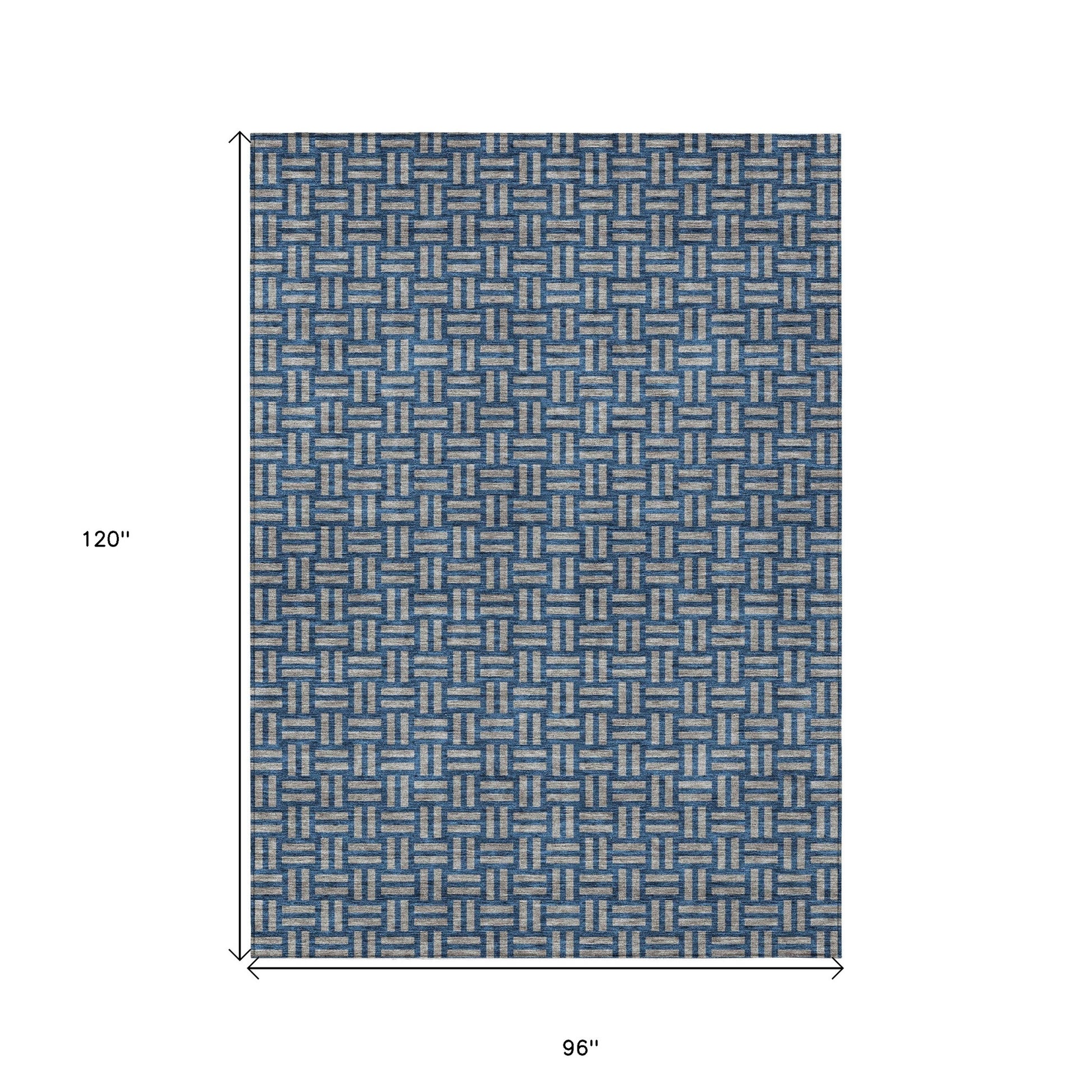 Tabselect Home Line 8' X 10' Blue And Gray Geometric Washable Indoor Outdoor Area Rug