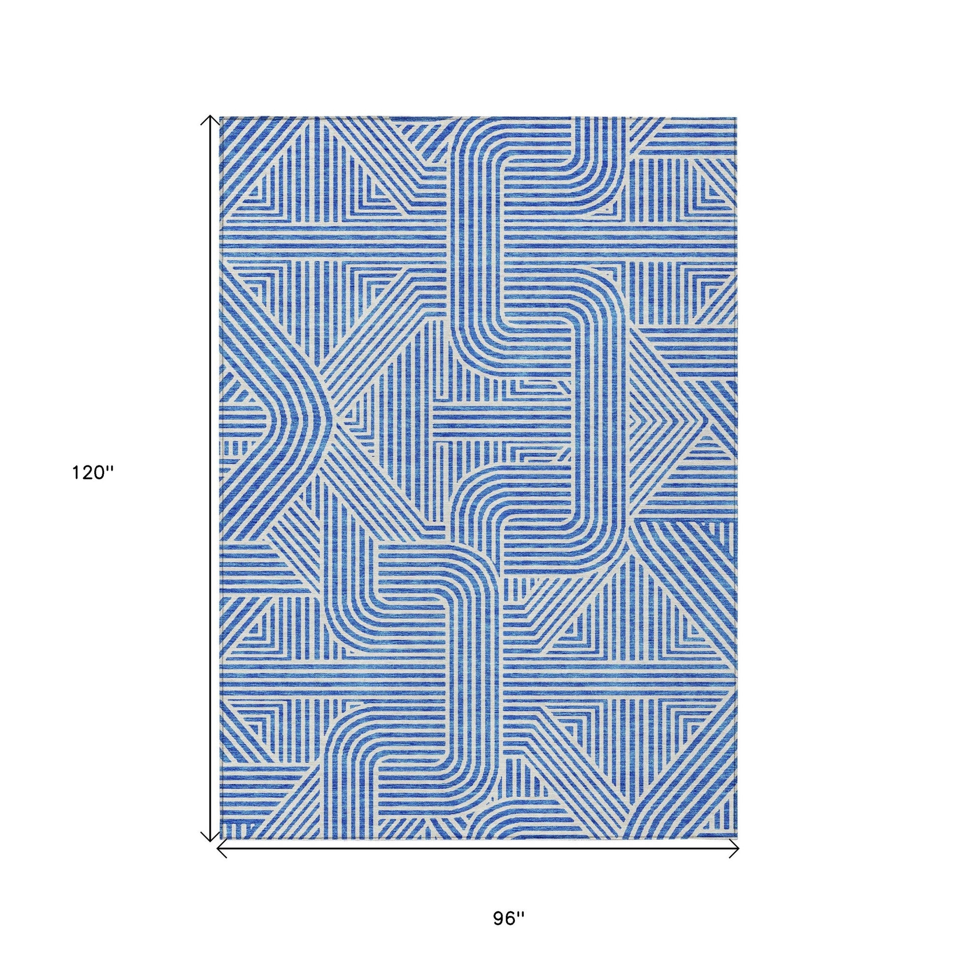 Tabselect Home Line 8' X 10' Blue And Ivory Abstract Washable Indoor Outdoor Area Rug