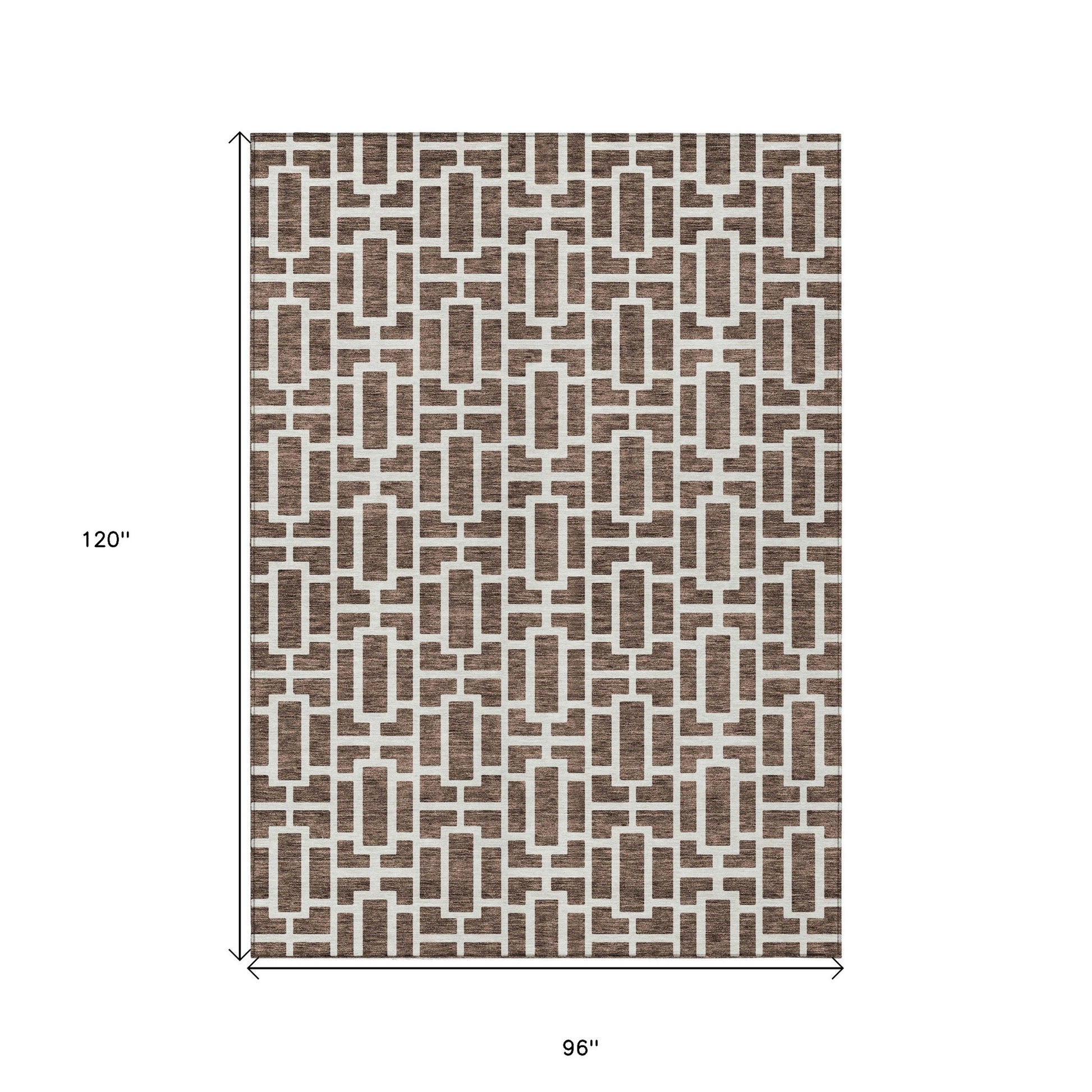 Tabselect Home Line 8' X 10' Brown And Beige Geometric Washable Indoor Outdoor Area Rug