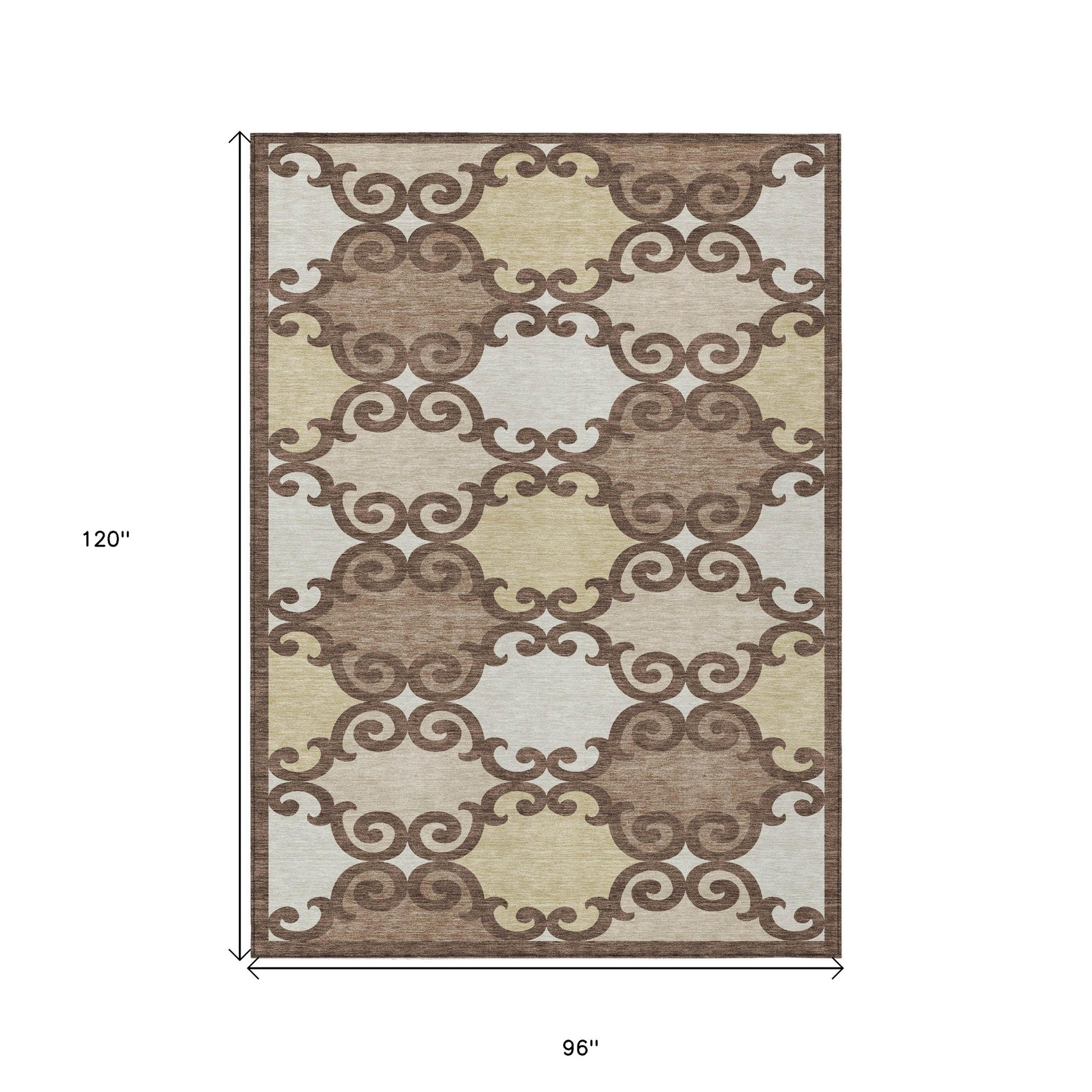 Tabselect Home Line 8' X 10' Brown And Beige Trellis Washable Indoor Outdoor Area Rug