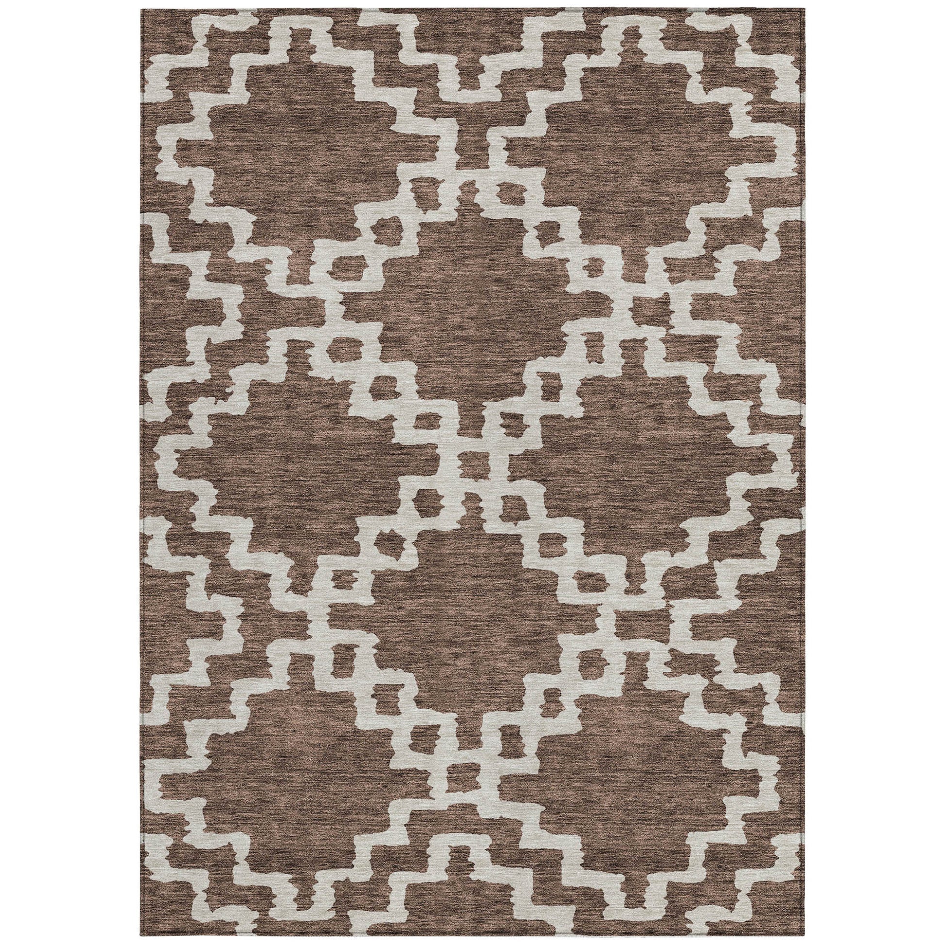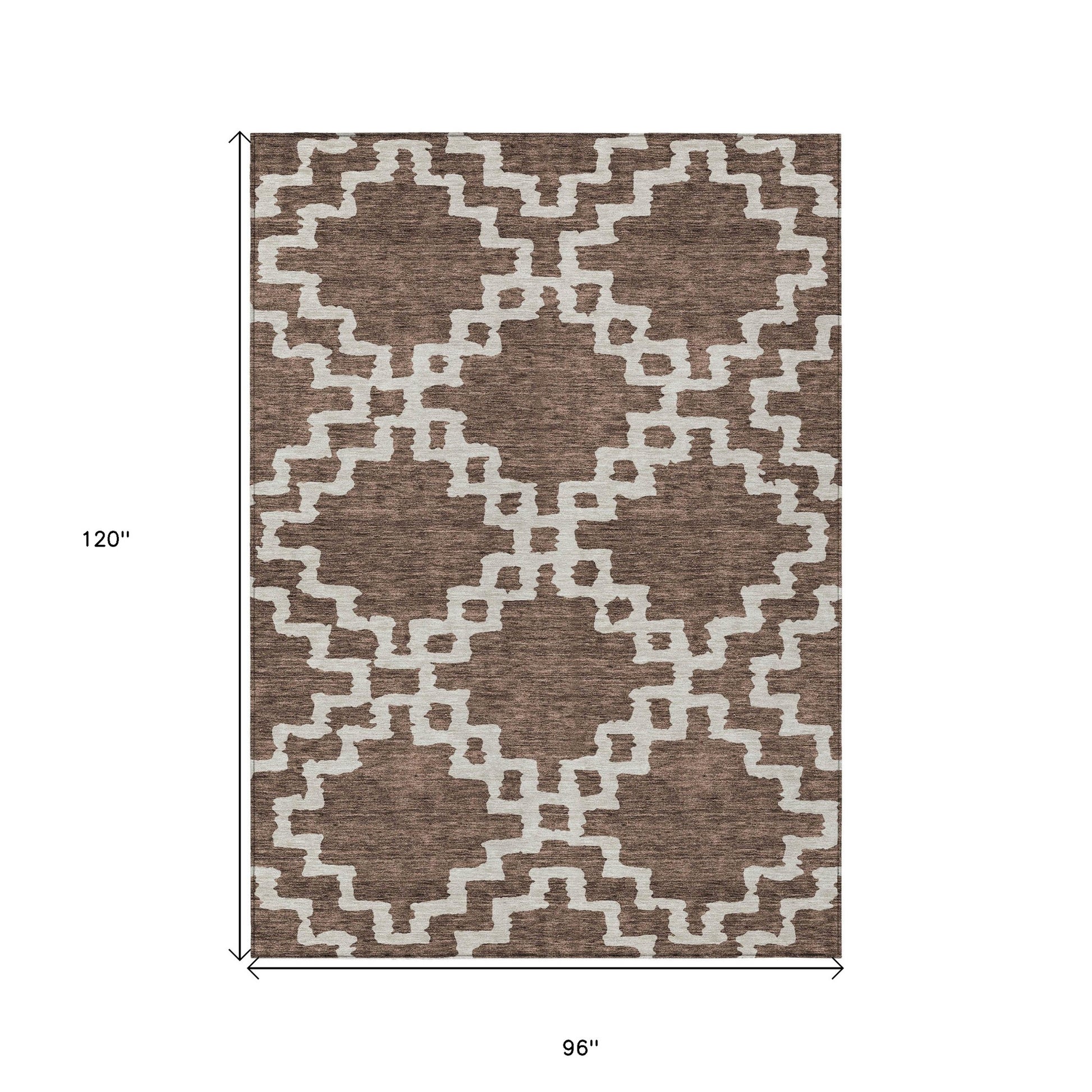 Tabselect Home Line 8' X 10' Brown And Ivory Geometric Washable Indoor Outdoor Area Rug