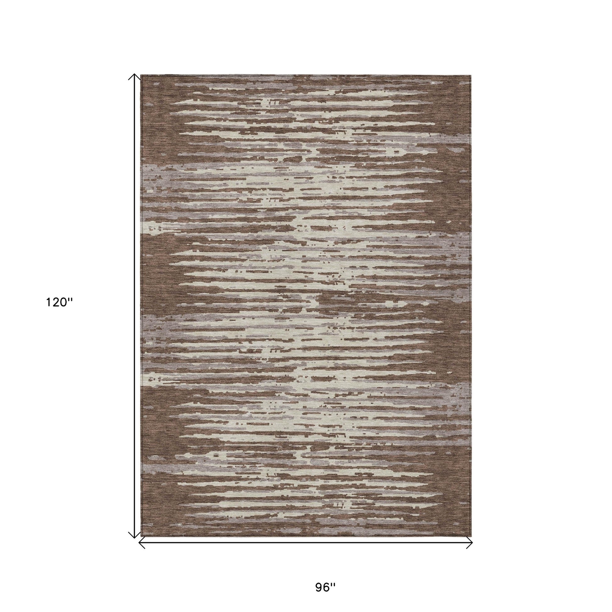 Tabselect Home Line 8' X 10' Brown Beige And Ivory Striped Washable Indoor Outdoor Area Rug