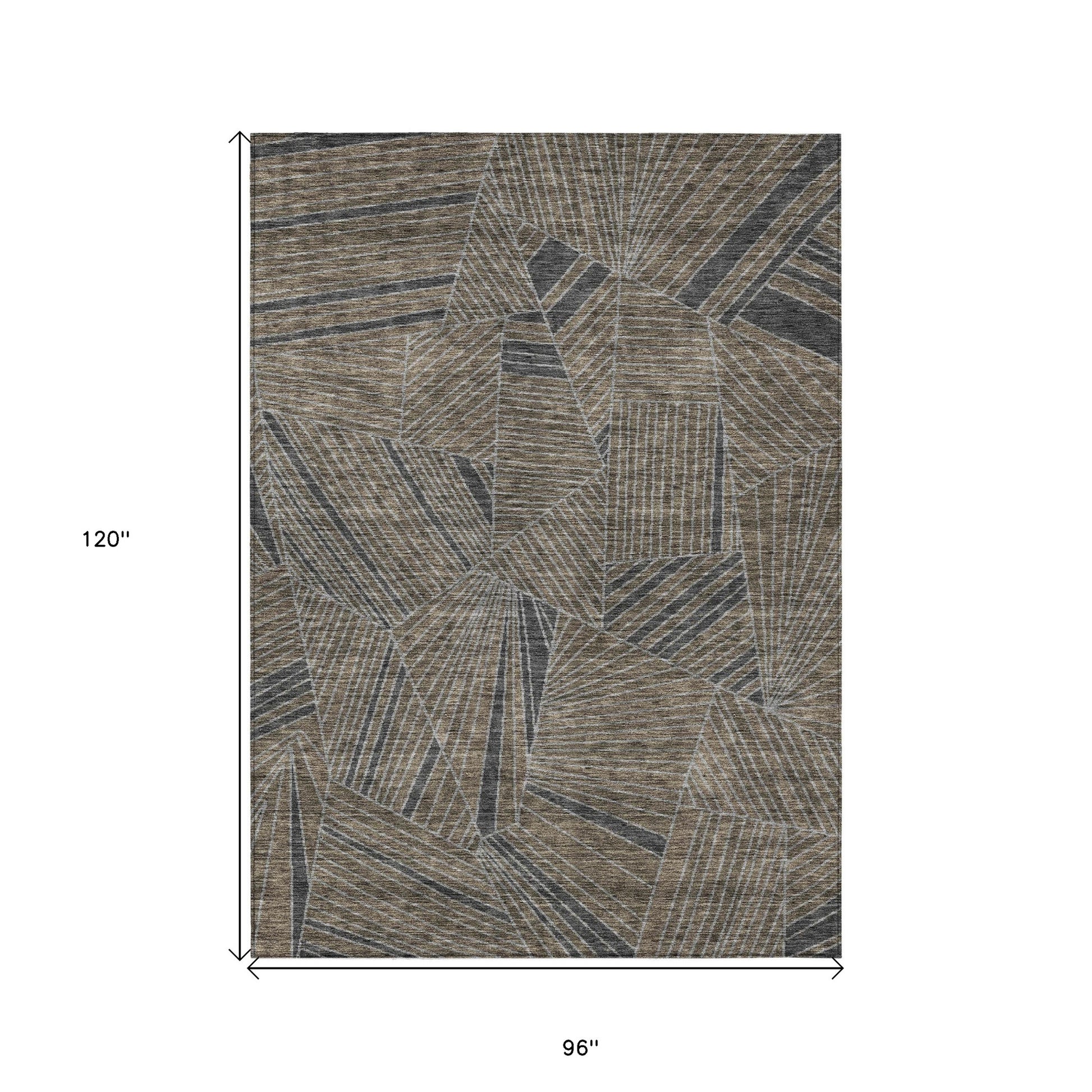 Tabselect Home Line 8' X 10' Brown Black And Gray Geometric Washable Indoor Outdoor Area Rug