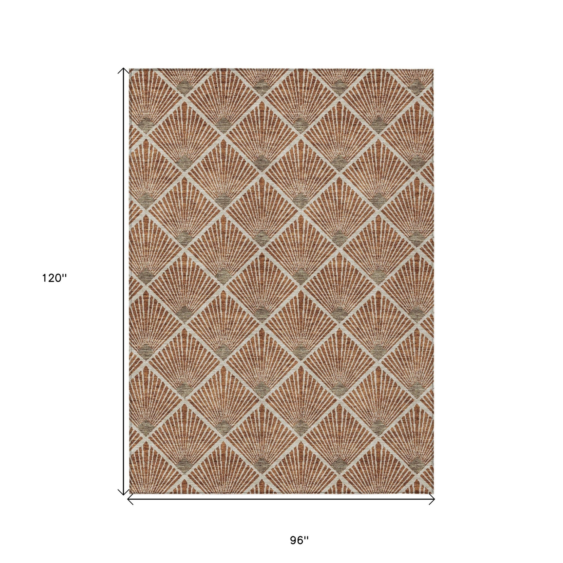 Tabselect Home Line 8' X 10' Brown Copper And Beige Geometric Washable Indoor Outdoor Area Rug