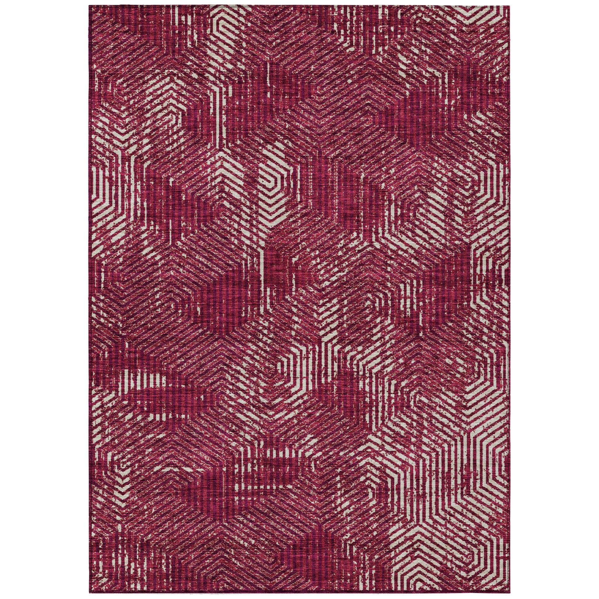 Tabselect Home Line 8' X 10' Burgundy And Ivory Geometric Washable Indoor Outdoor Area Rug