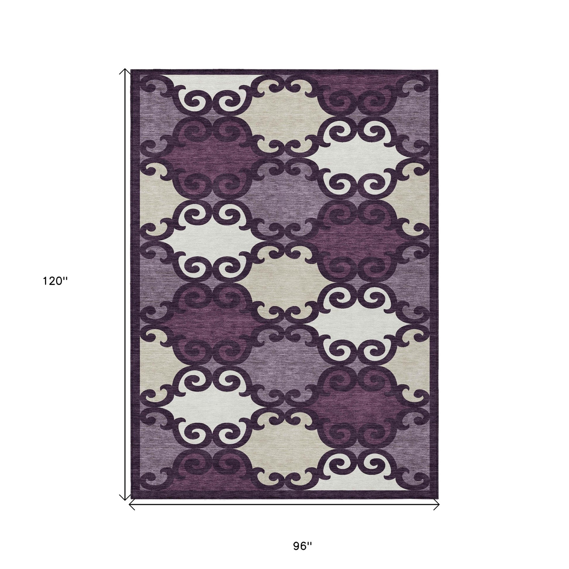 Tabselect Home Line 8' X 10' Eggplant And Ivory Trellis Washable Indoor Outdoor Area Rug
