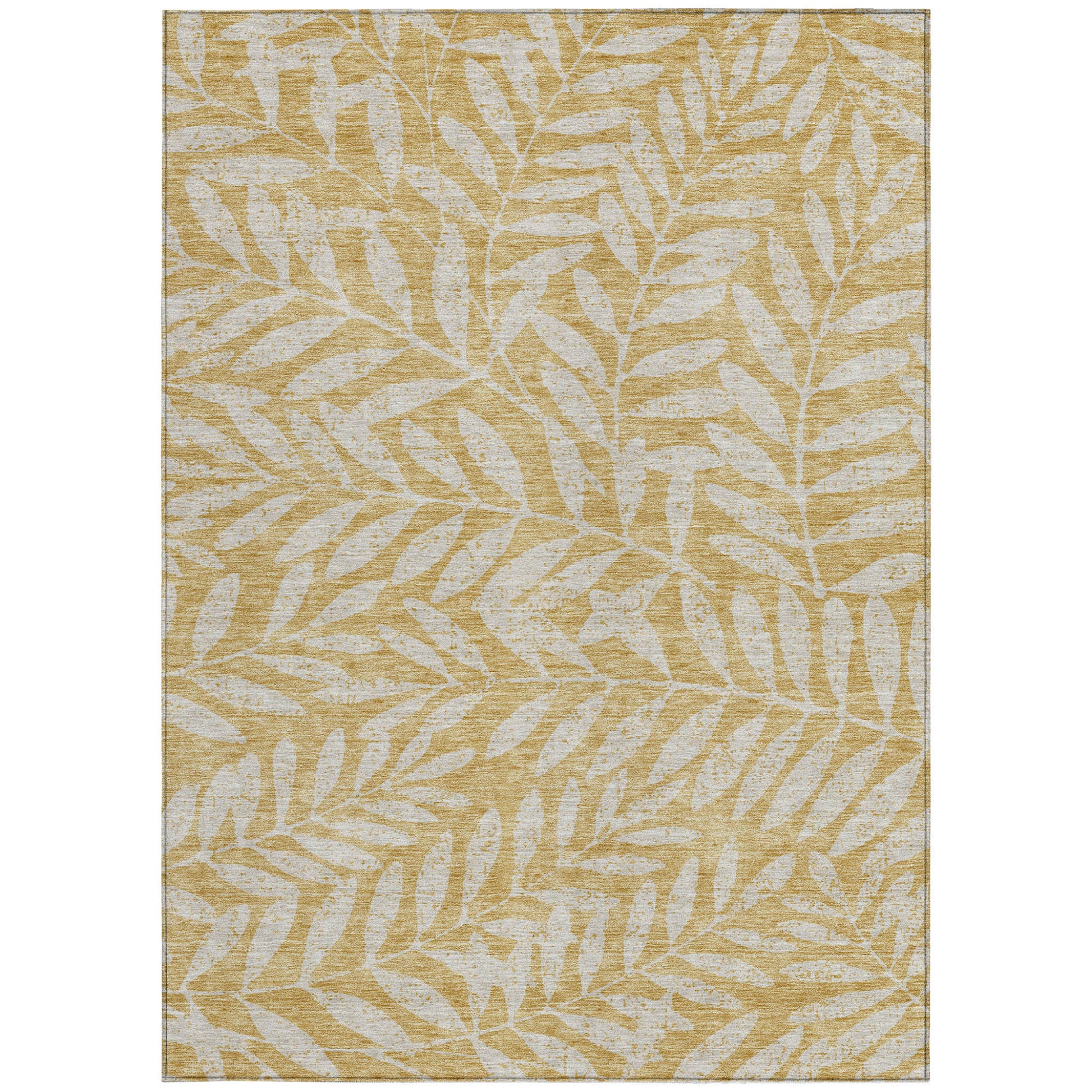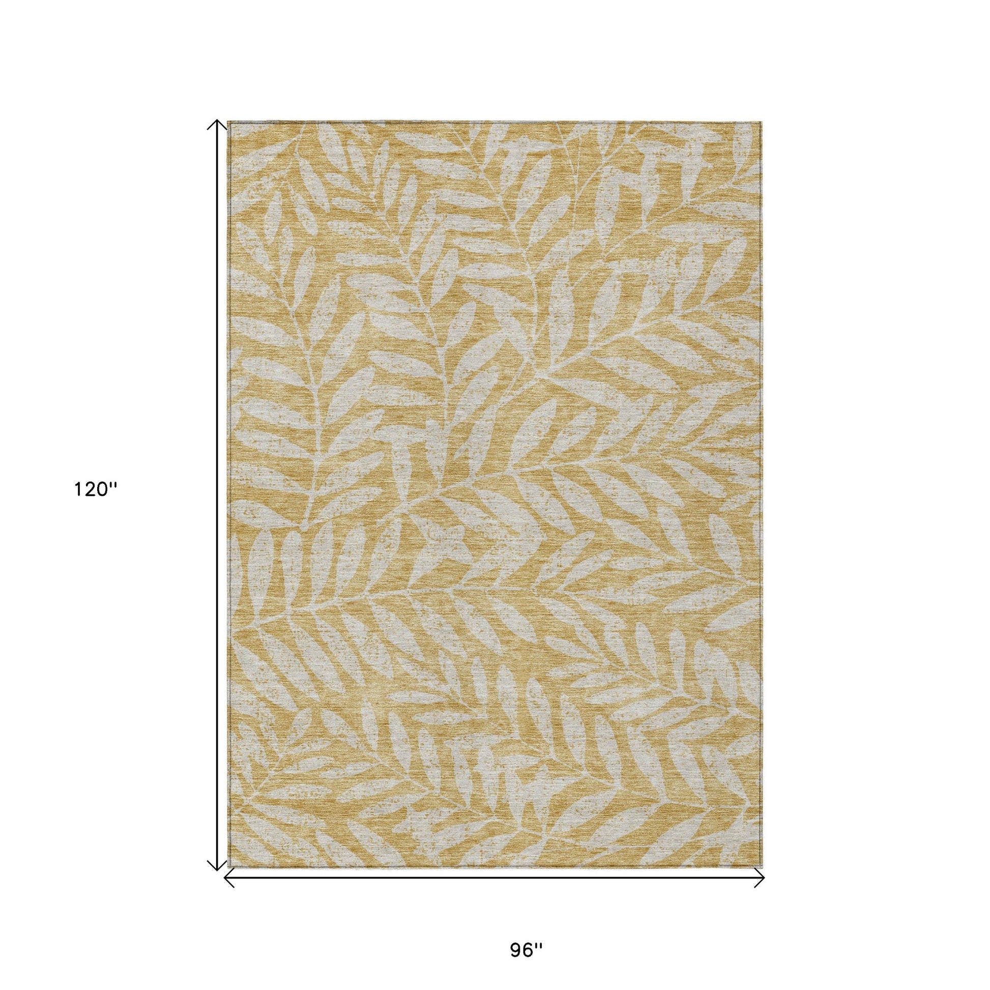 Tabselect Home Line 8' X 10' Gold And Gray Floral Washable Indoor Outdoor Area Rug