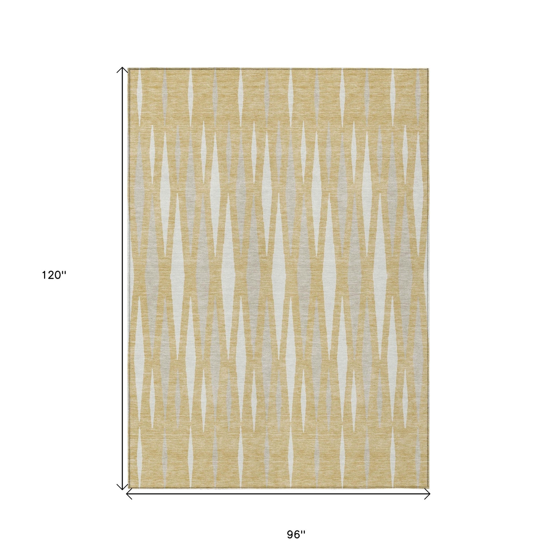Tabselect Home Line 8' X 10' Gold Gray And Ivory Geometric Washable Indoor Outdoor Area Rug