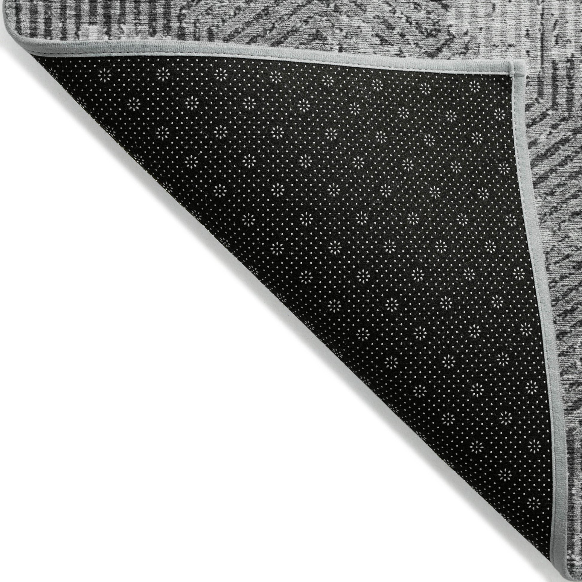 - A felt backing covers this rug to finish the look, keep the fibers in place, and help to keep the rug from slipping.