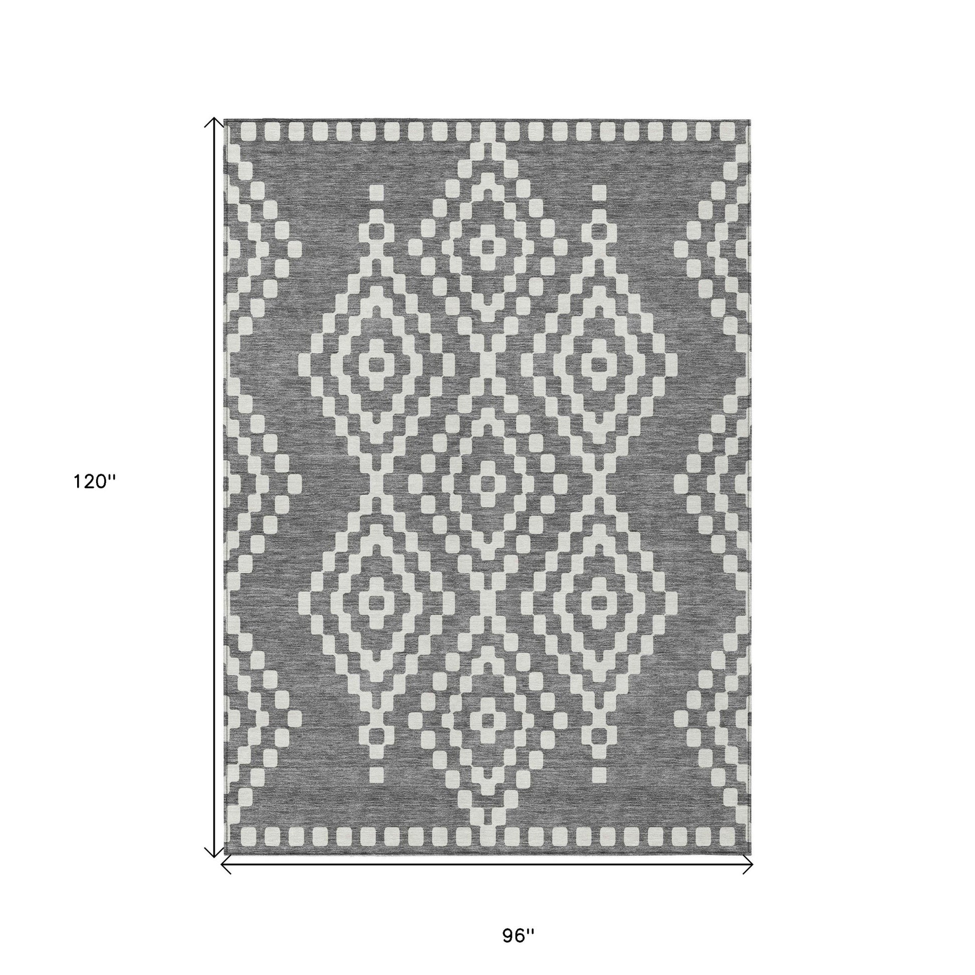 Tabselect Home Line 8' X 10' Gray And Ivory Geometric Washable Indoor Outdoor Area Rug