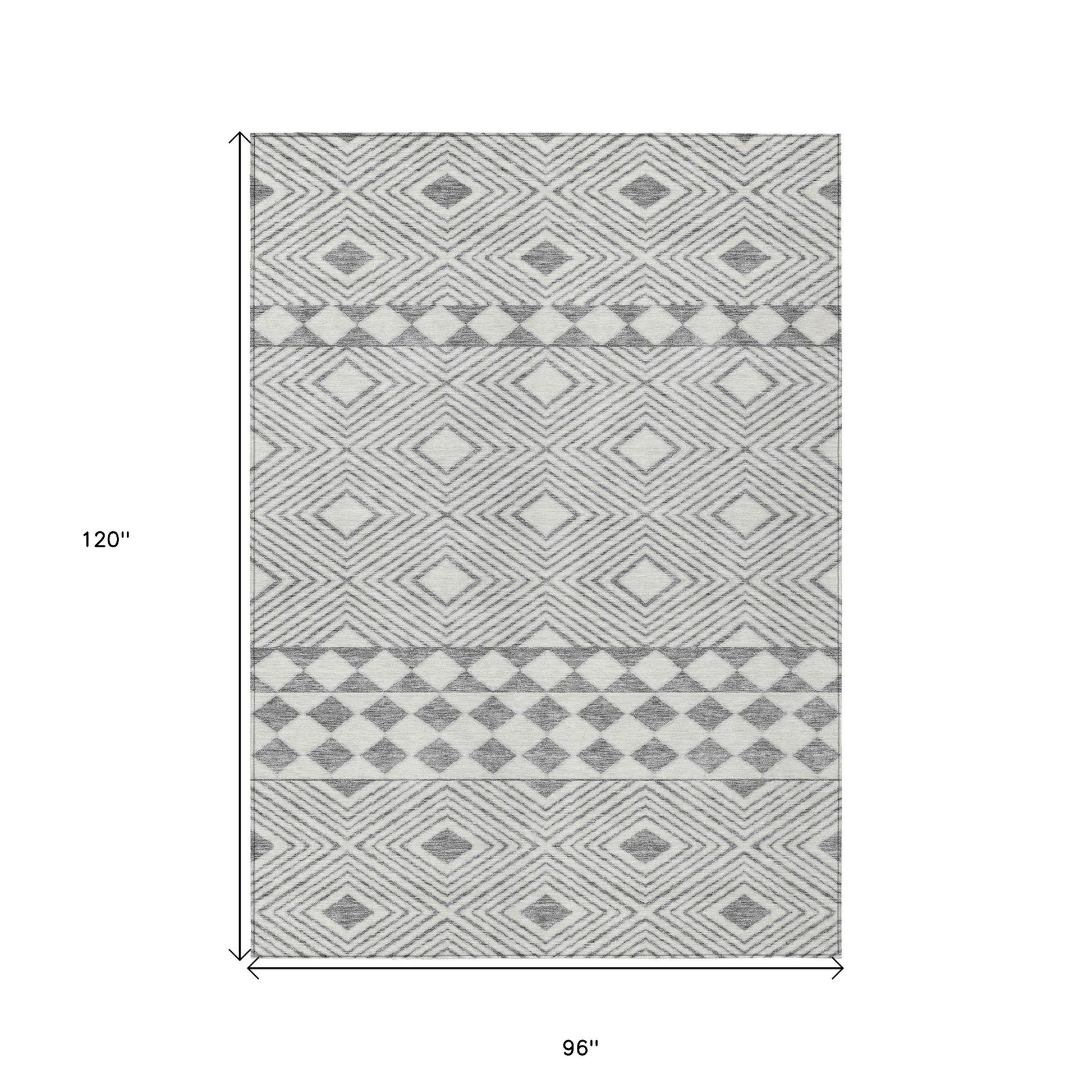 Tabselect Home Line 8' X 10' Gray And Ivory Geometric Washable Indoor Outdoor Area Rug