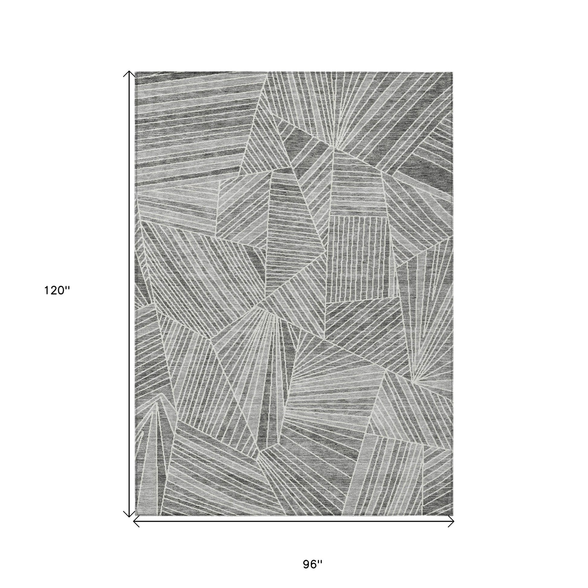 Tabselect Home Line 8' X 10' Gray And Ivory Geometric Washable Indoor Outdoor Area Rug