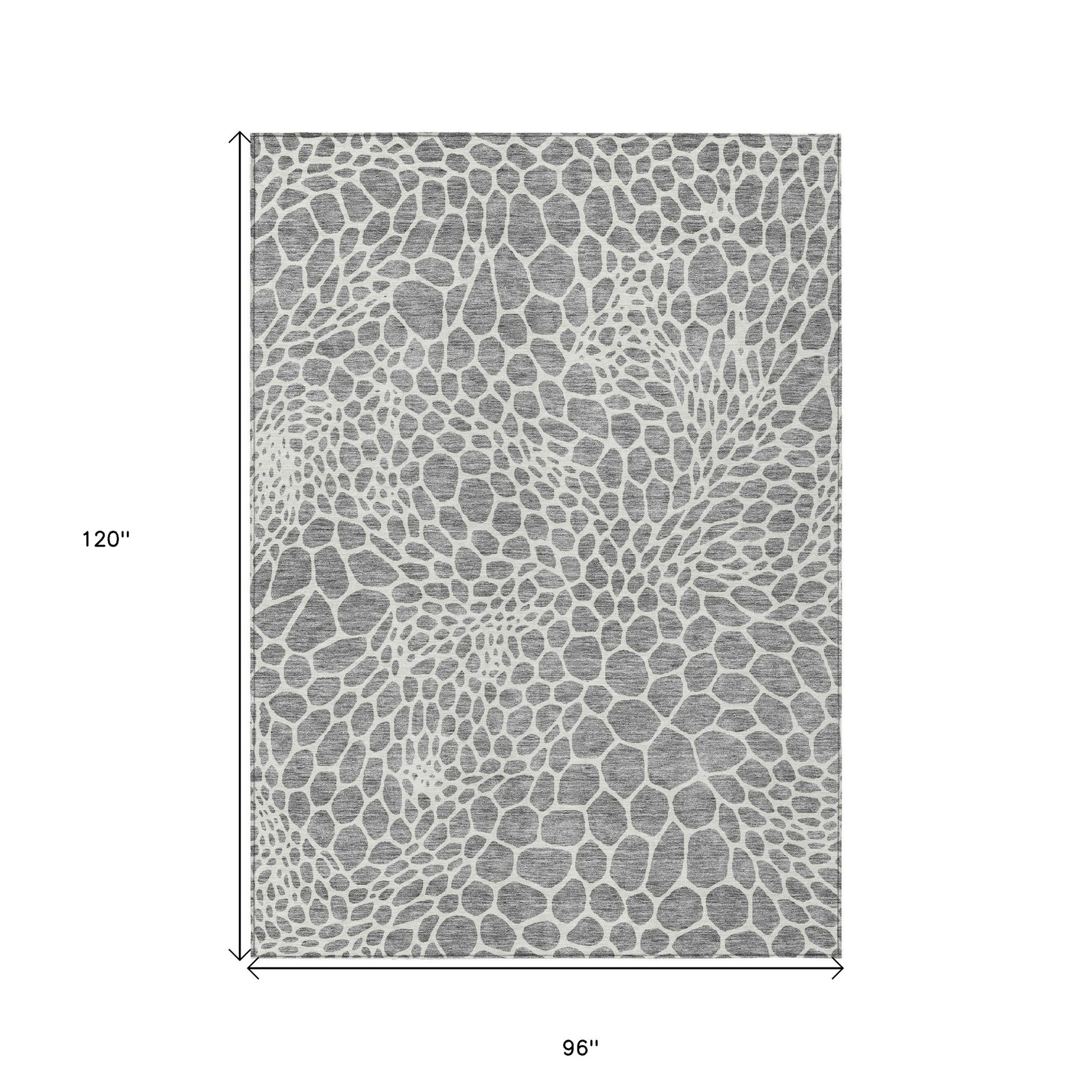 Tabselect Home Line 8' X 10' Gray And Ivory Geometric Washable Indoor Outdoor Area Rug