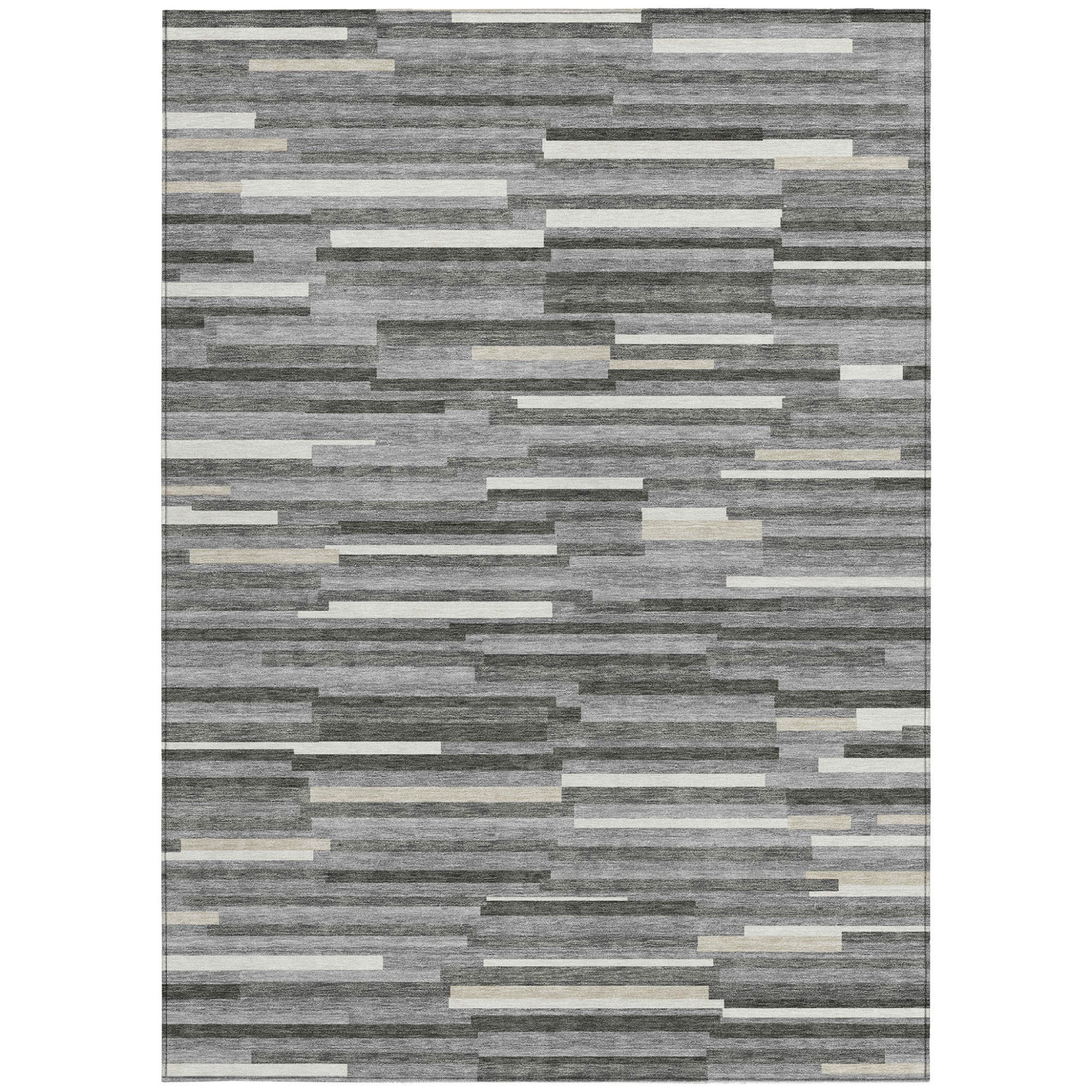 Tabselect Home Line 8' X 10' Gray And Ivory Striped Washable Indoor Outdoor Area Rug