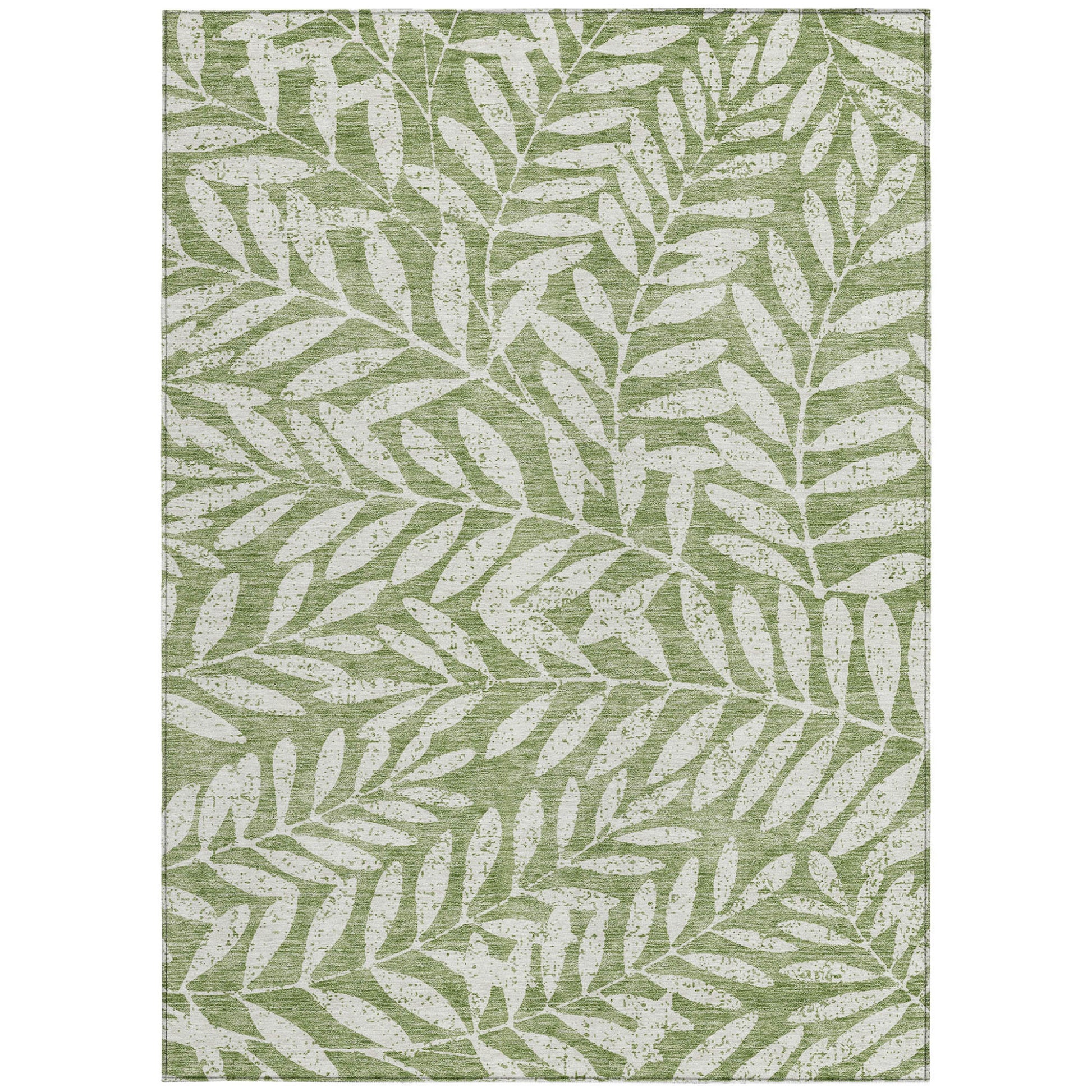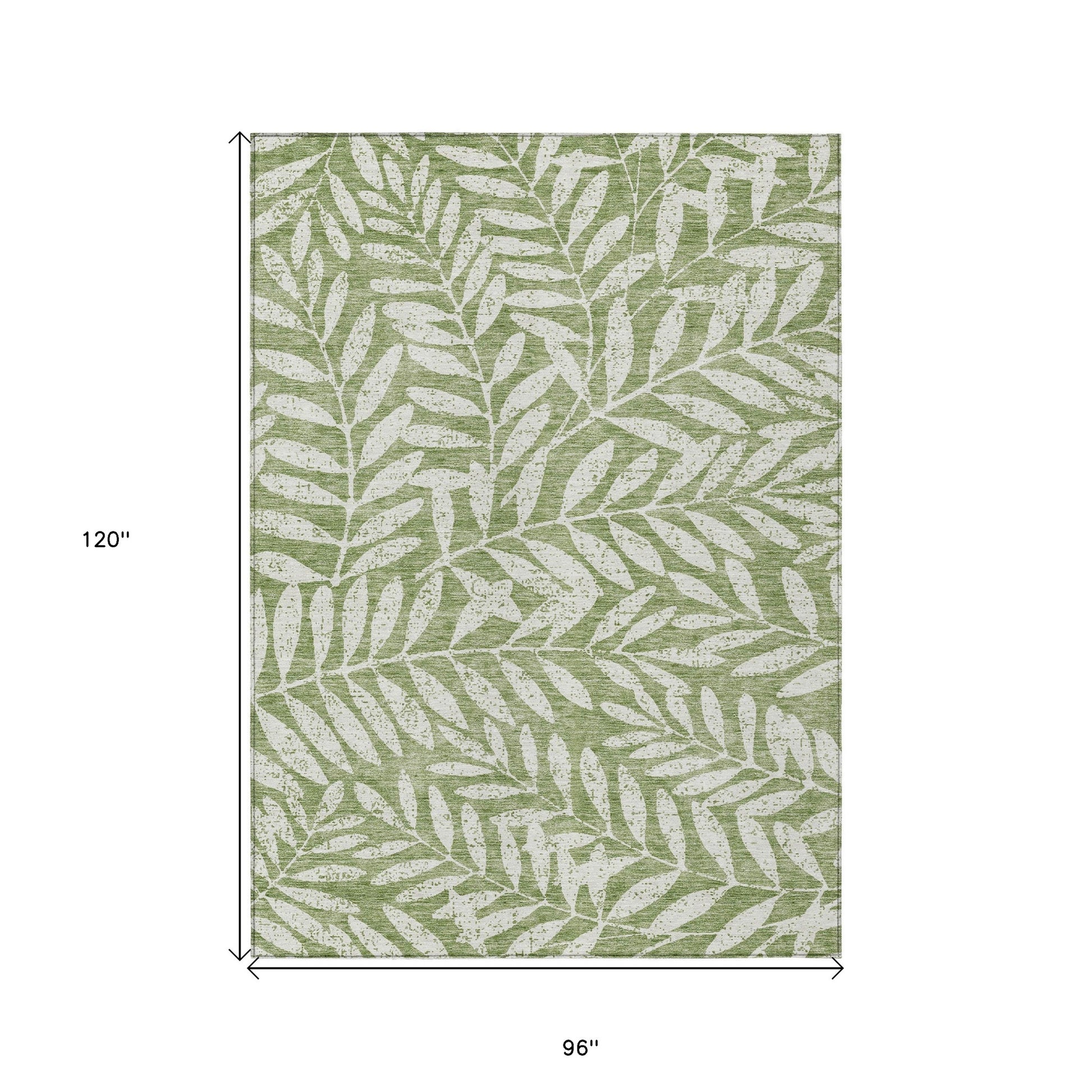 Tabselect Home Line 8' X 10' Green And Ivory Floral Washable Indoor Outdoor Area Rug