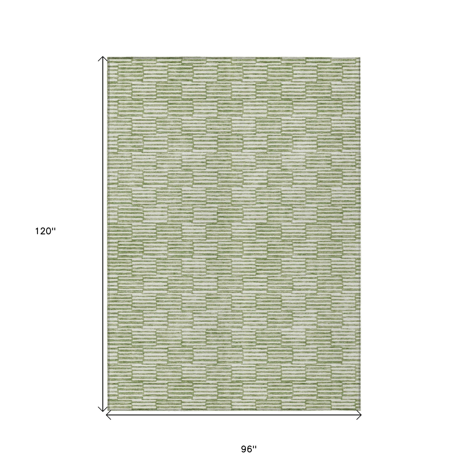 Tabselect Home Line 8' X 10' Green And Ivory Geometric Washable Indoor Outdoor Area Rug