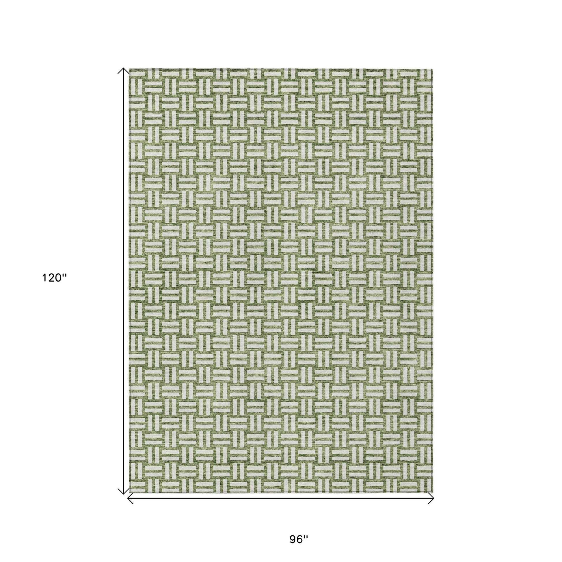 Tabselect Home Line 8' X 10' Green And Ivory Geometric Washable Indoor Outdoor Area Rug
