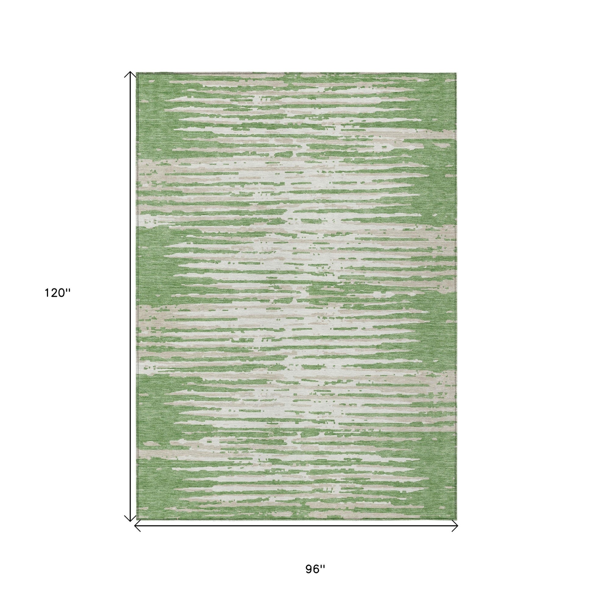 Tabselect Home Line 8' X 10' Green And Ivory Striped Washable Indoor Outdoor Area Rug