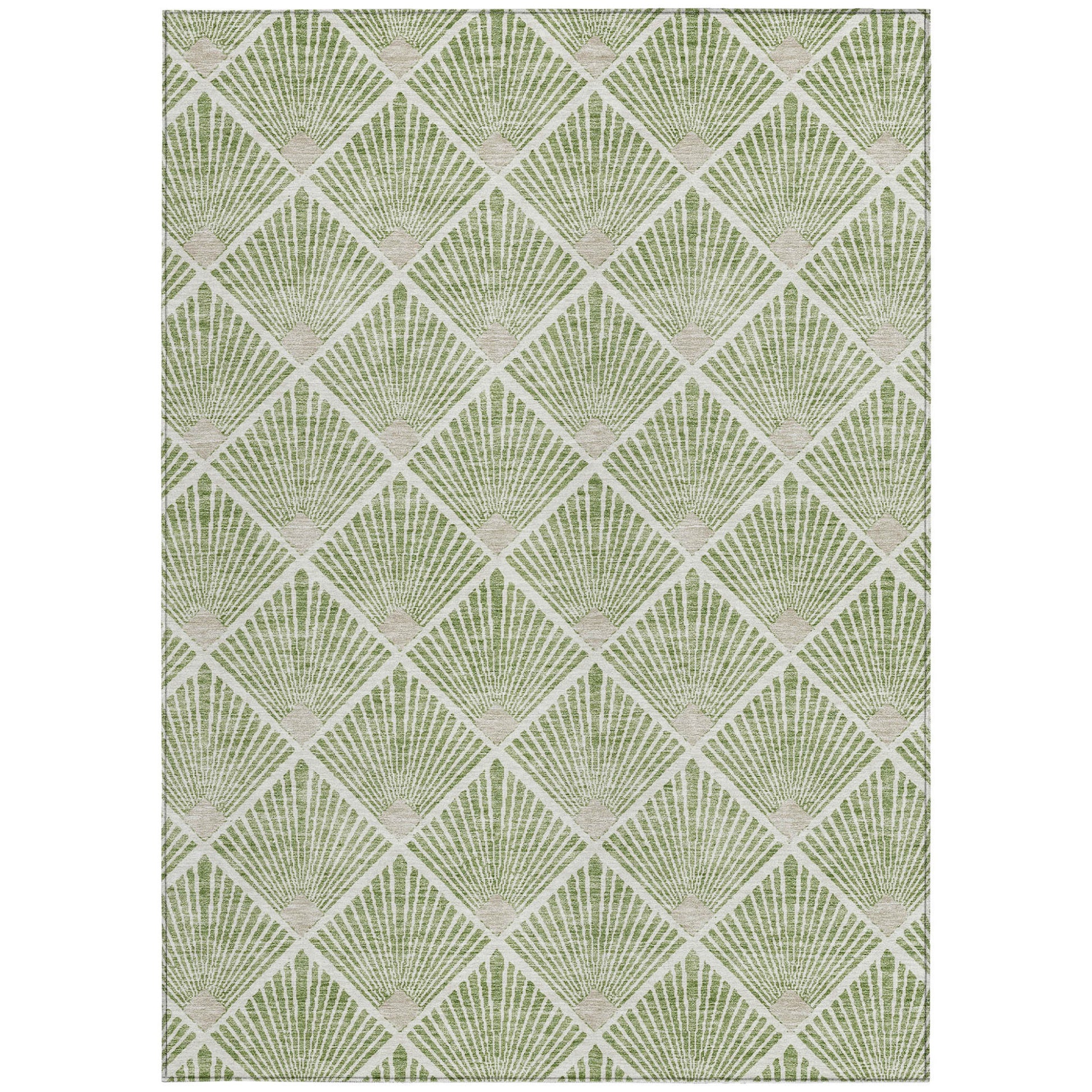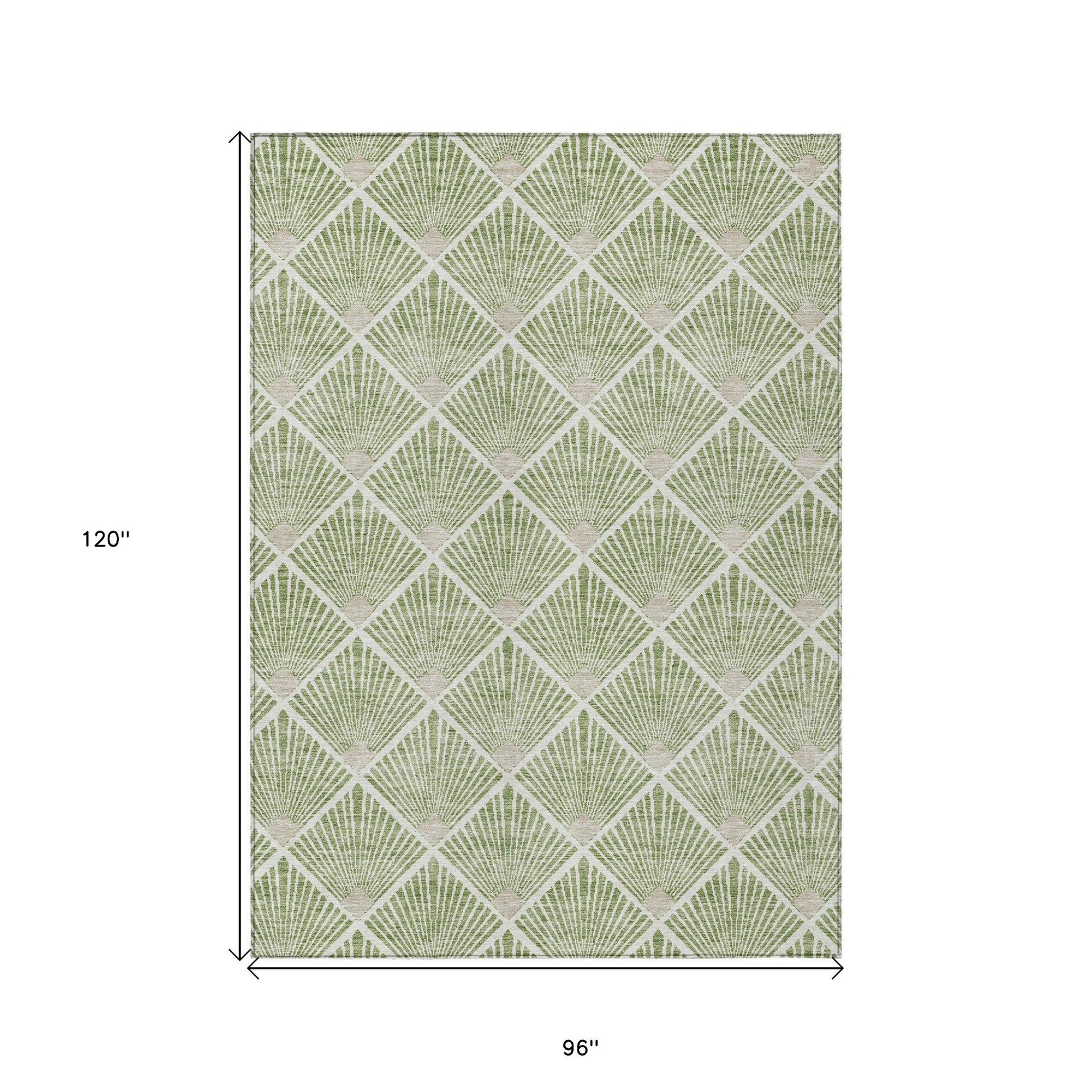 Tabselect Home Line 8' X 10' Green Beige And Ivory Geometric Washable Indoor Outdoor Area Rug