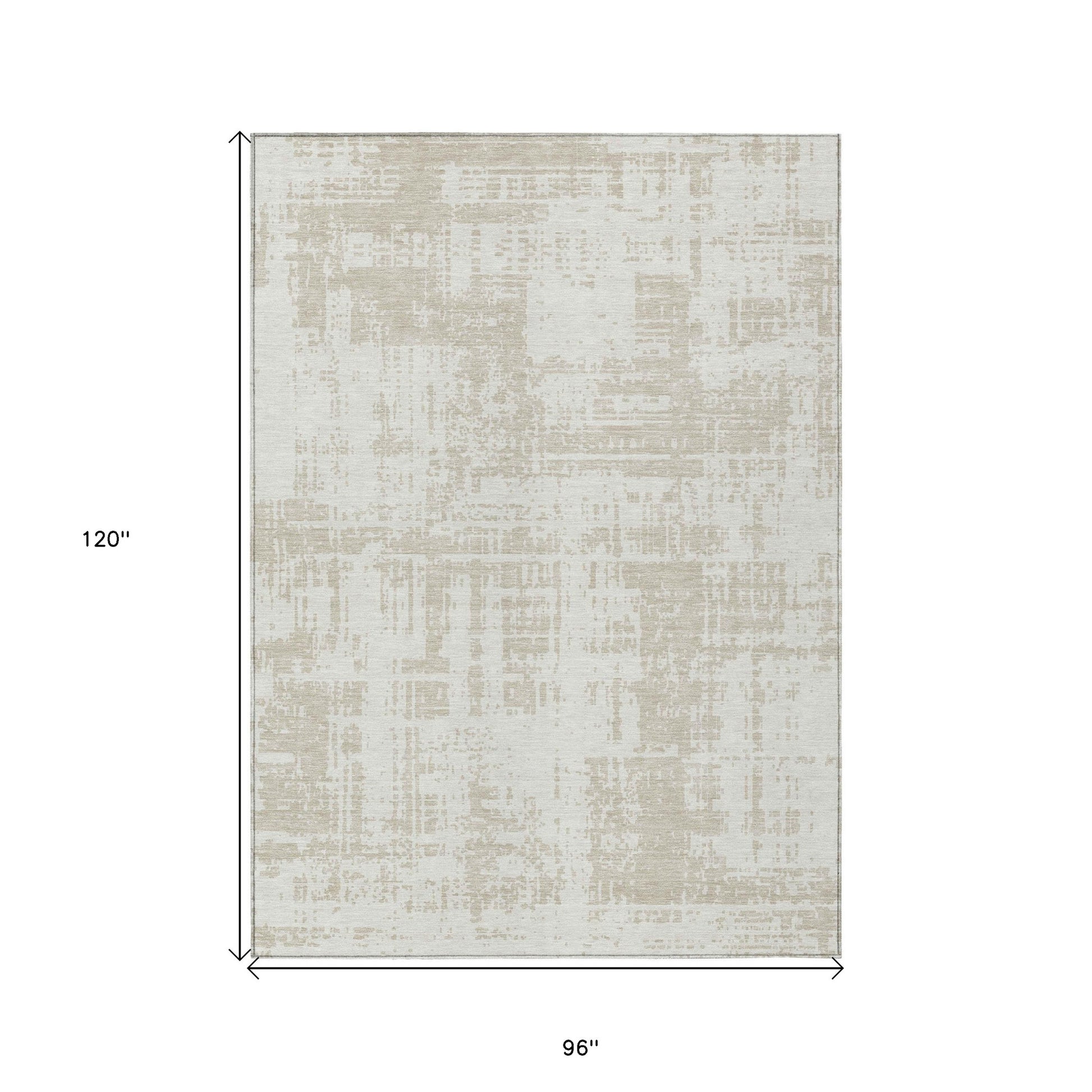 Tabselect Home Line 8' X 10' Ivory And Beige Abstract Washable Indoor Outdoor Area Rug