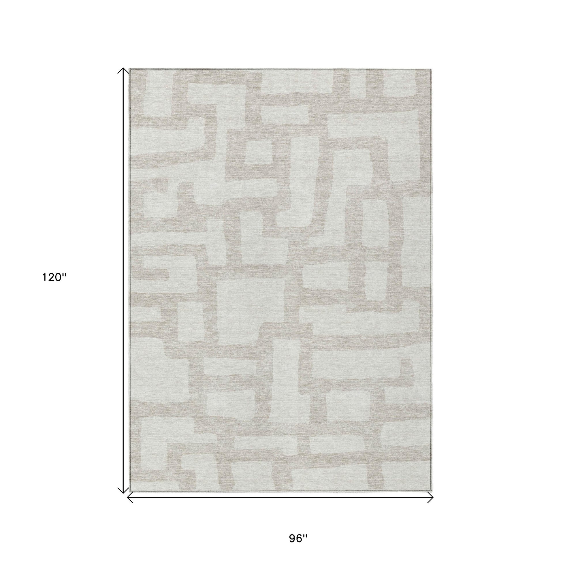 Tabselect Home Line 8' X 10' Ivory And Beige Abstract Washable Indoor Outdoor Area Rug