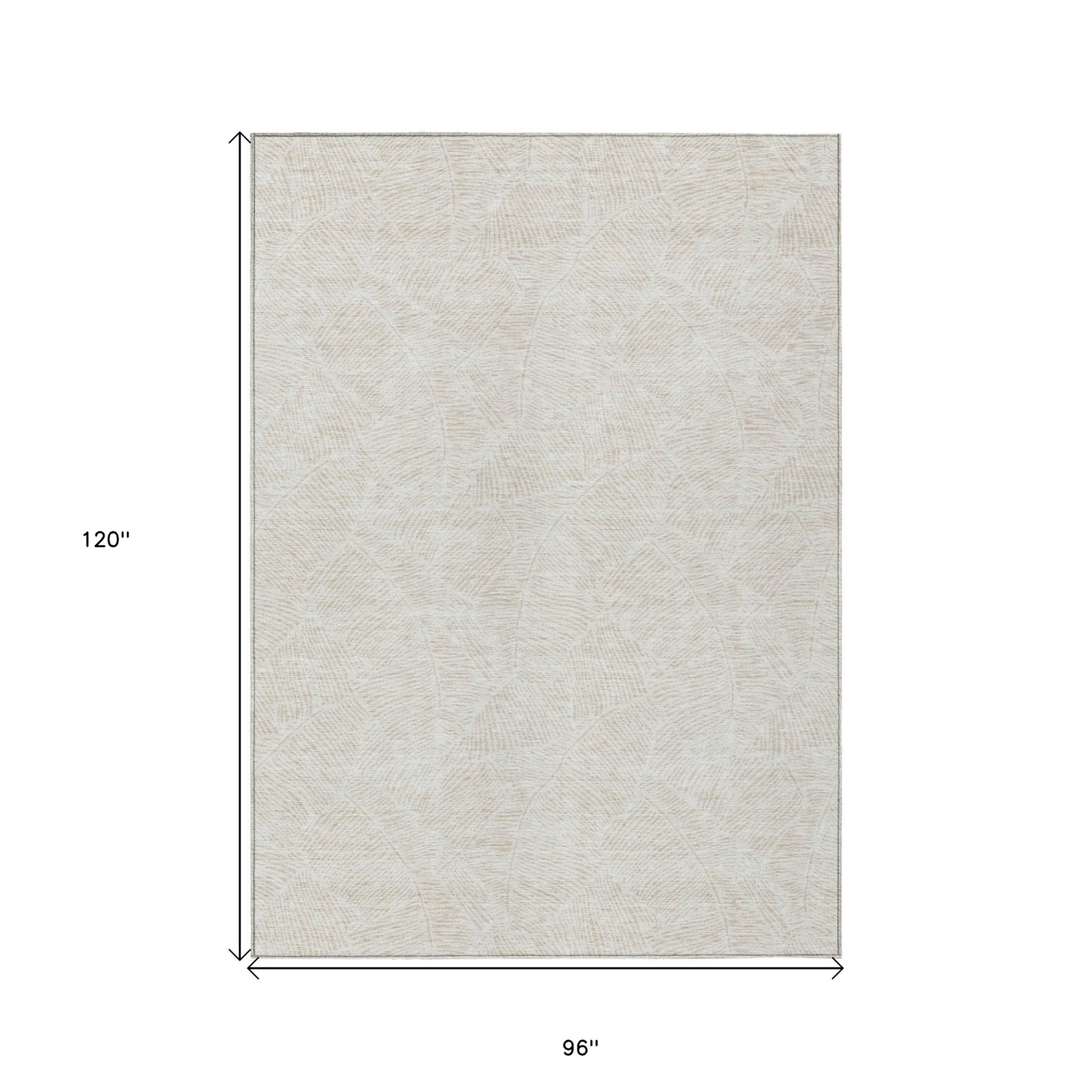 Tabselect Home Line 8' X 10' Ivory And Beige Floral Washable Indoor Outdoor Area Rug