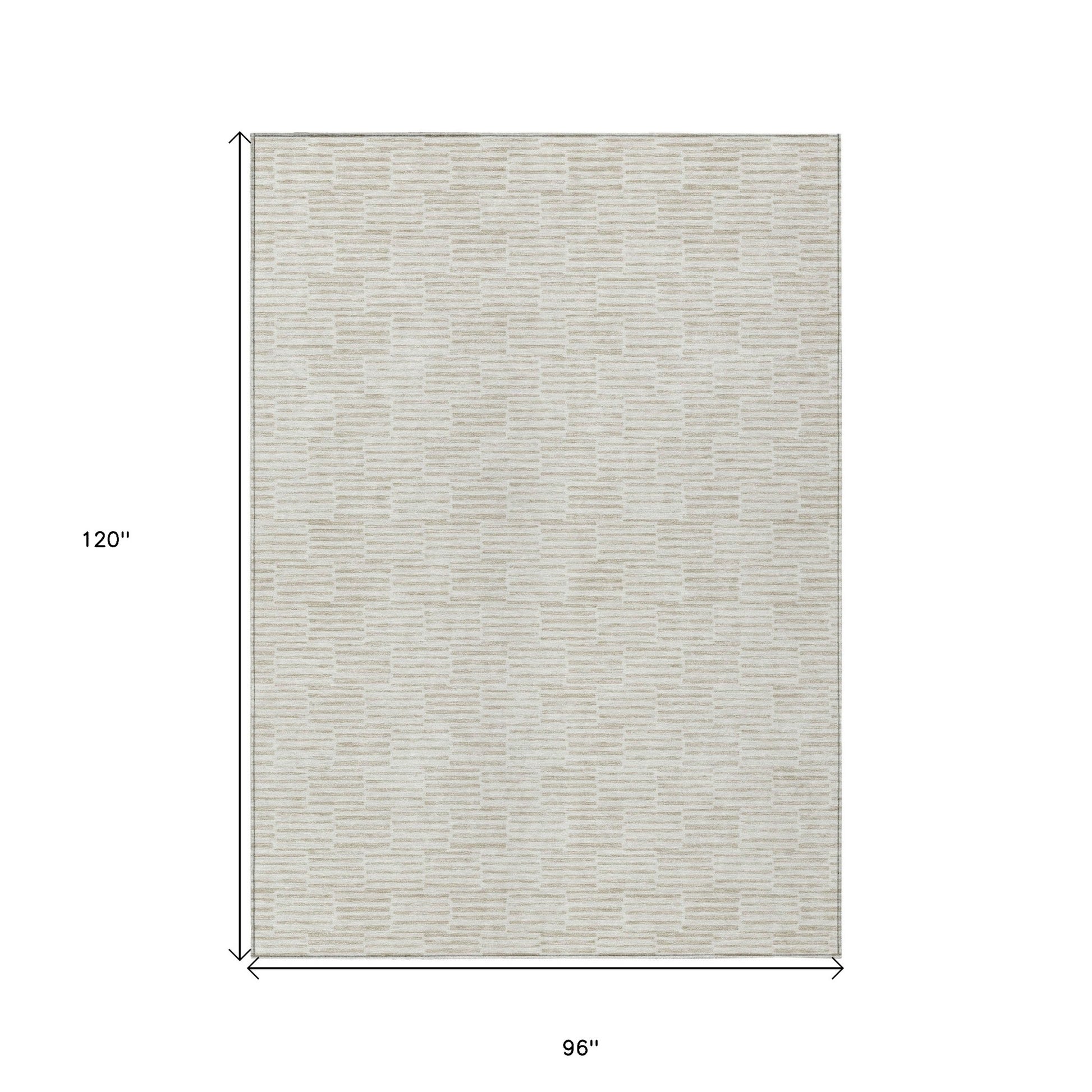 Tabselect Home Line 8' X 10' Ivory And Beige Geometric Washable Indoor Outdoor Area Rug