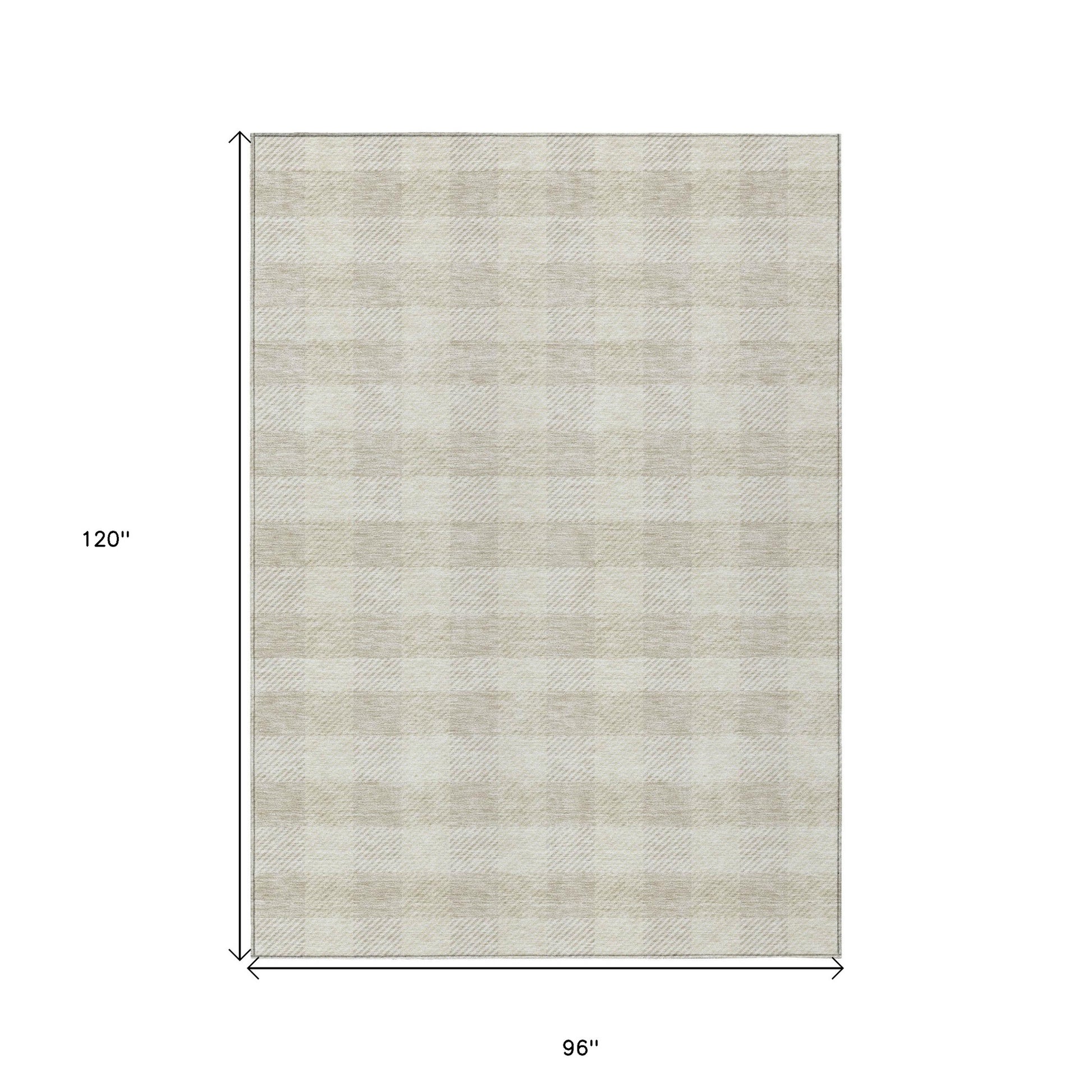 Tabselect Home Line 8' X 10' Ivory Plaid Washable Indoor Outdoor Area Rug