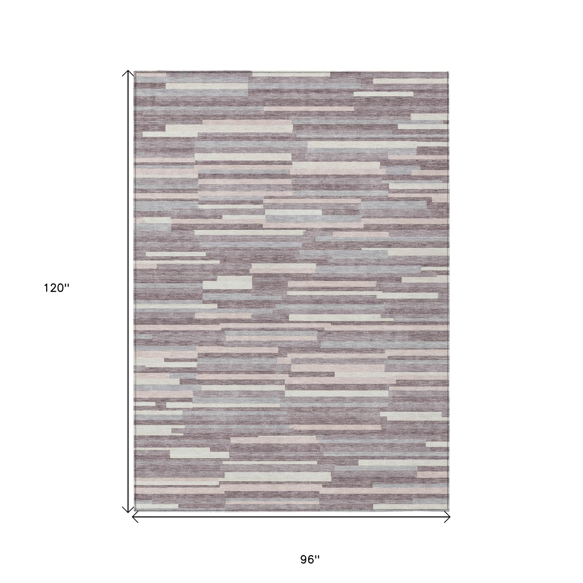 Set an inviting tone in your space with this 8-foot x 10-foot lavender gray and ivory striped washable indoor outdoor area rug. This rectangle shaped rug features a striped design that will work well both indoors or out. A classic shape marries with good looking design for your living room, hall, bedroom, porch, patio, or poolside. Ideal for outdoor spaces or high traffic areas with kids and pets, this rug is made from heavy duty polyester that is stain resistant to help repel water, dirt, and stains. Versatile in use, durable, and easy to maintain, this rug is an ideal solution to add a decorative and inviting touch to your indoor or outdoor space. 96-inch h x 120-inch w x 0.19-inch d.