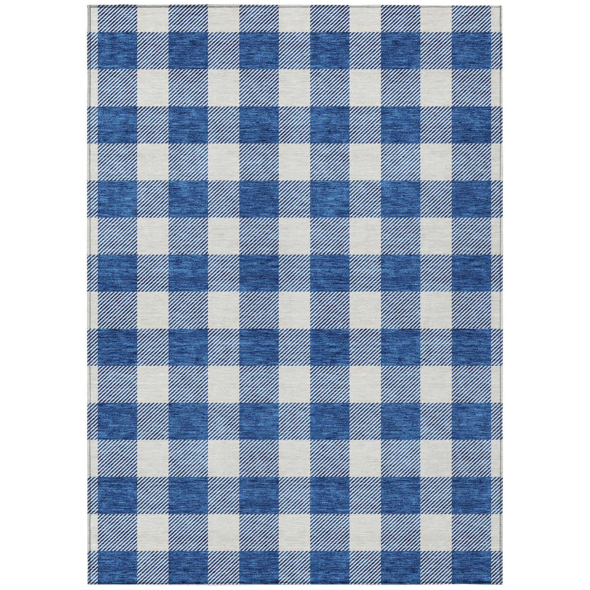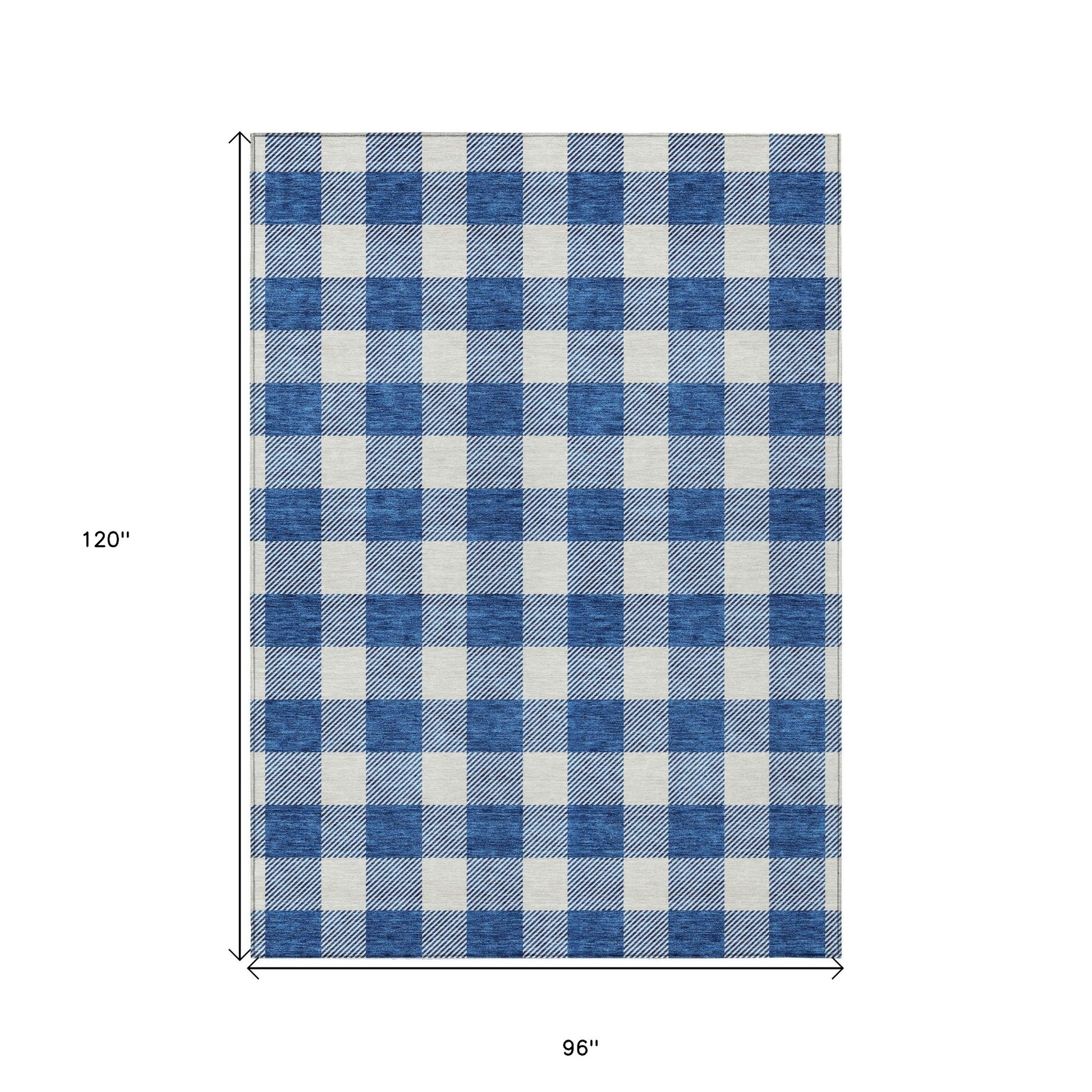 Tabselect Home Line 8' X 10' Navy Blue And Gray Plaid Washable Indoor Outdoor Area Rug