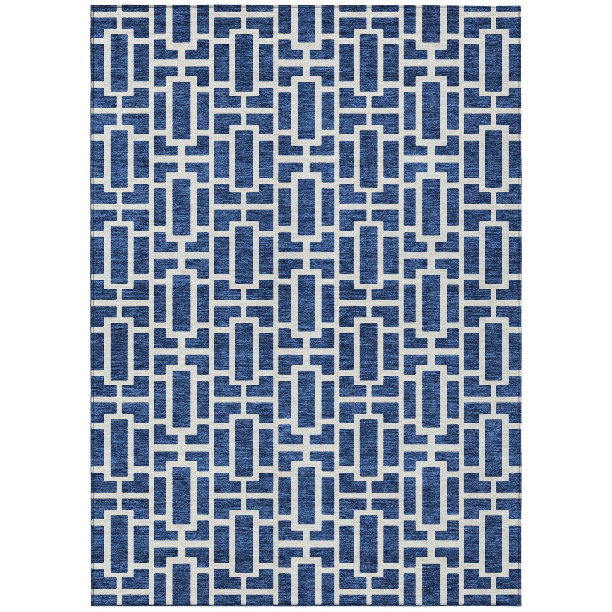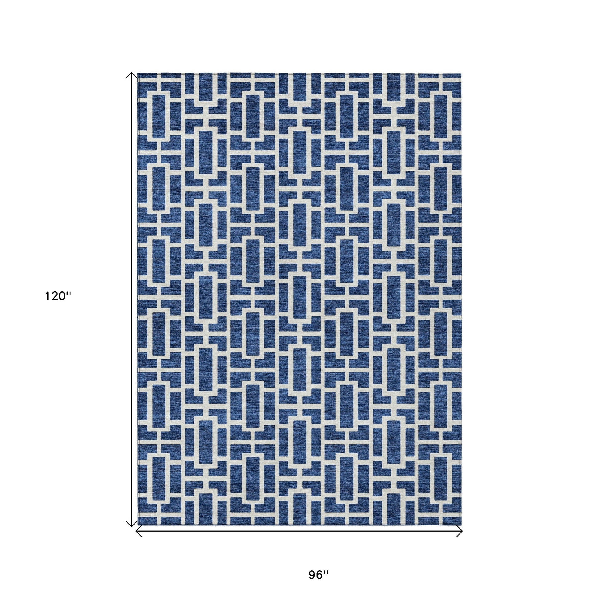 Tabselect Home Line 8' X 10' Navy Blue And Ivory Geometric Washable Indoor Outdoor Area Rug