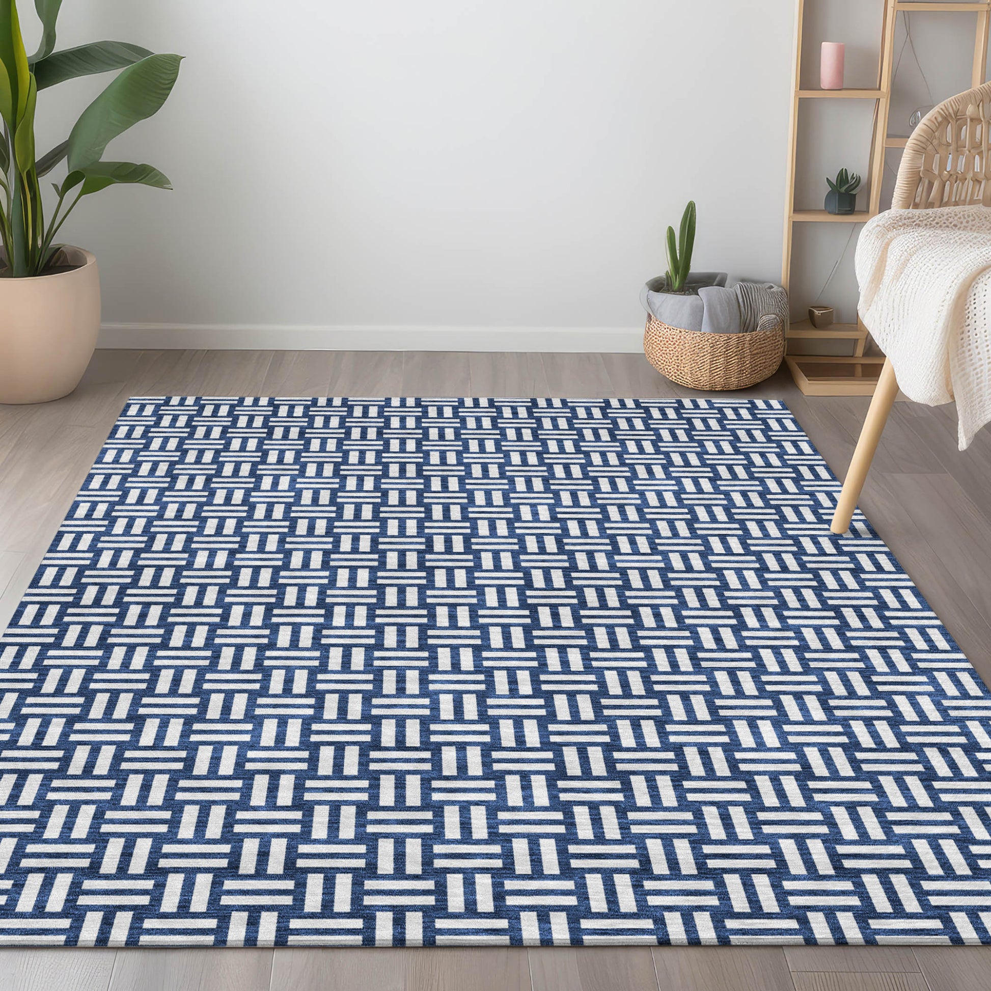 Tabselect Home Line 8' X 10' Navy Blue And Ivory Geometric Washable Indoor Outdoor Area Rug