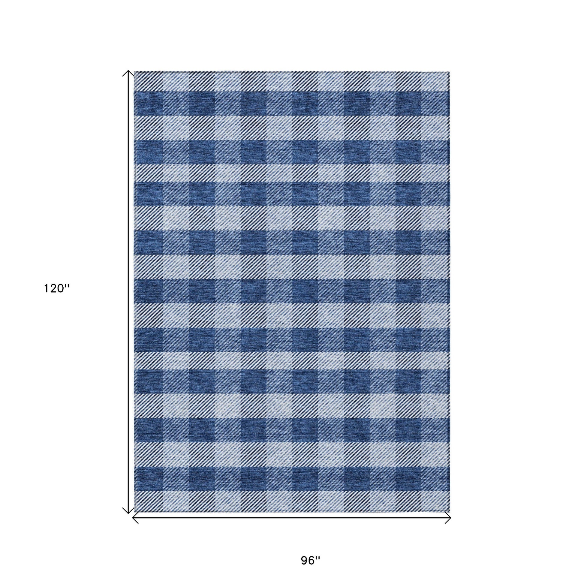 Add great coloration and comfortable texture to your space with this 8-foot x 10-foot navy blue and ivory plaid washable indoor outdoor area rug. This rectangle shaped rug features a plaid design that will work well both indoors or out. A classic shape marries with good looking design for your living room, hall, bedroom, porch, patio, or poolside. Ideal for outdoor spaces or high traffic areas with kids and pets, this rug is made from heavy duty polyester that is stain resistant to help repel water, dirt, and stains. Makes a great way to dress up your patio, porch, or poolside, but also works well as a durable and easy to maintain option in the kitchen, family room, or mudroom. 96-inch h x 120-inch w x 0.19-inch d.