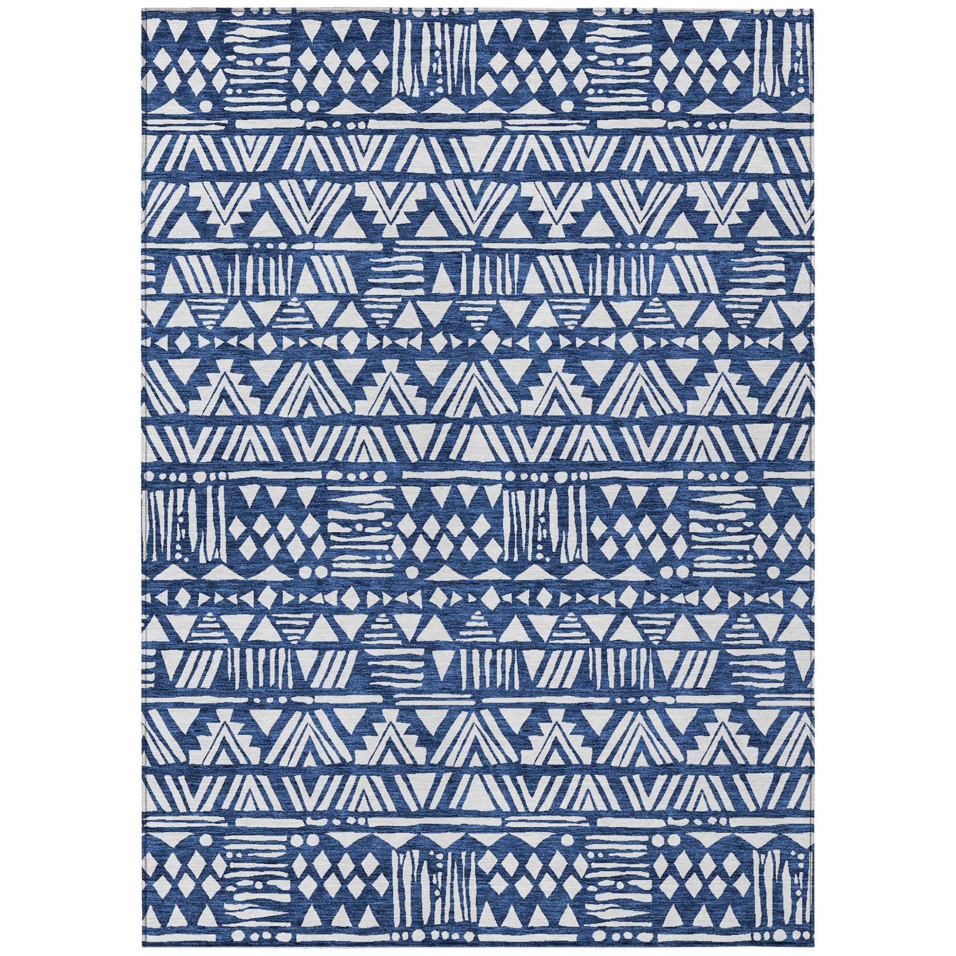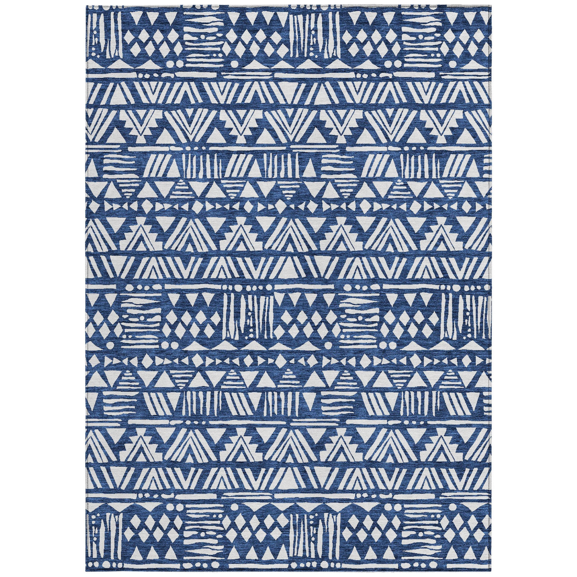 Tabselect Home Line 8' X 10' Navy Blue And Ivory Southwestern Washable Indoor Outdoor Area Rug