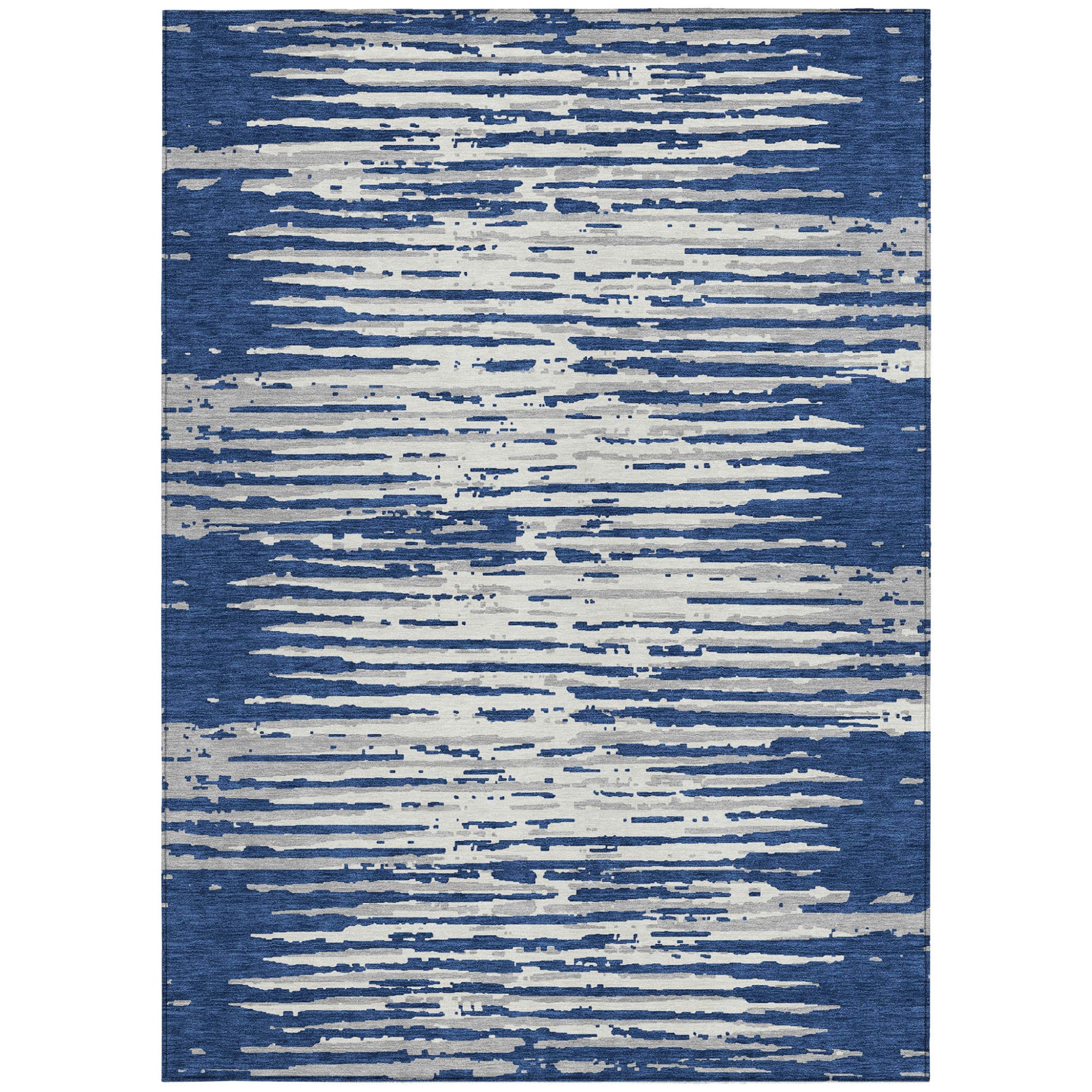 Tabselect Home Line 8' X 10' Navy Blue And Ivory Striped Washable Indoor Outdoor Area Rug